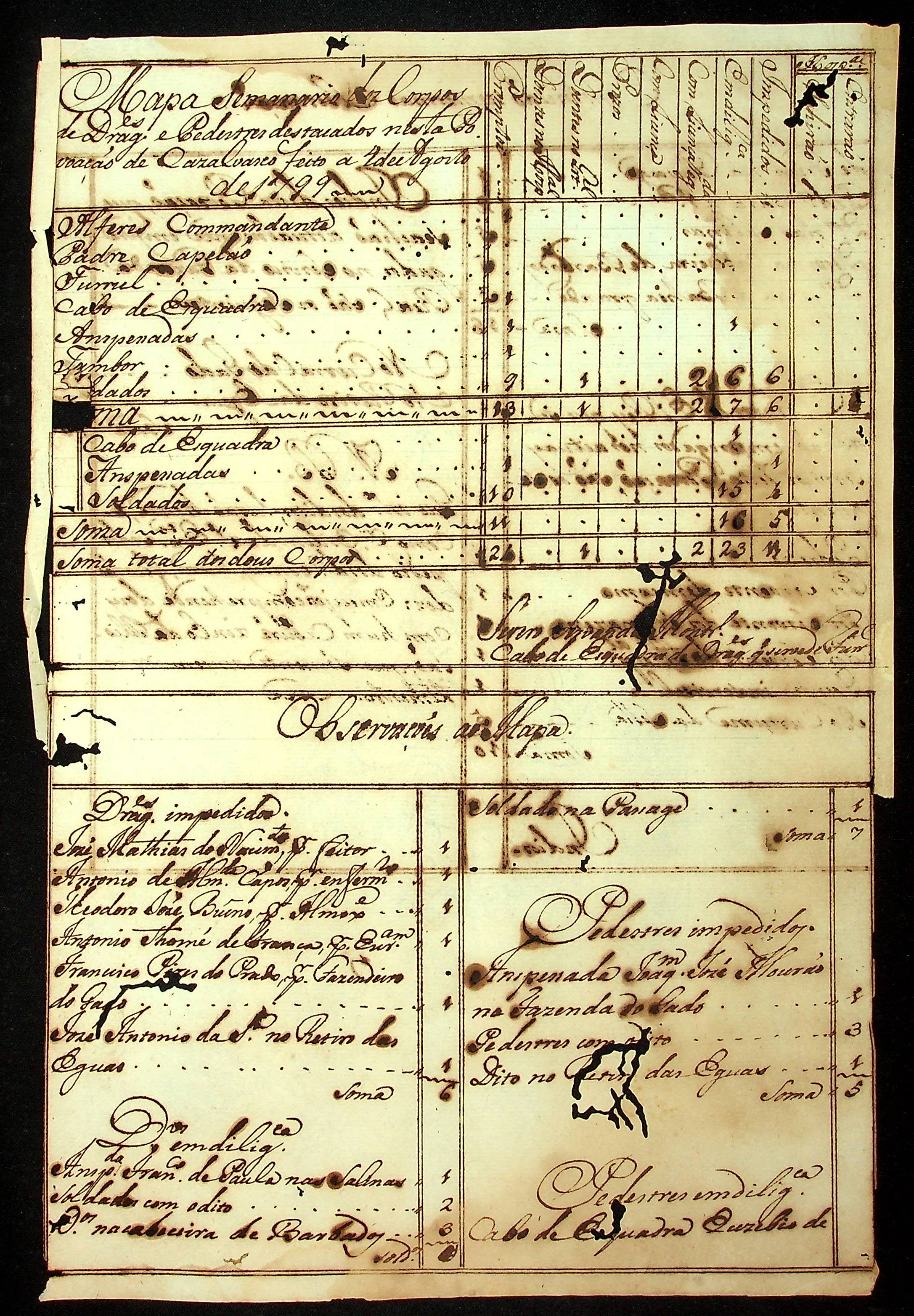 MAPA Semanário dos Corpos de Dragões e Pedestres destacamento nesta Povoação de Casalvasco.