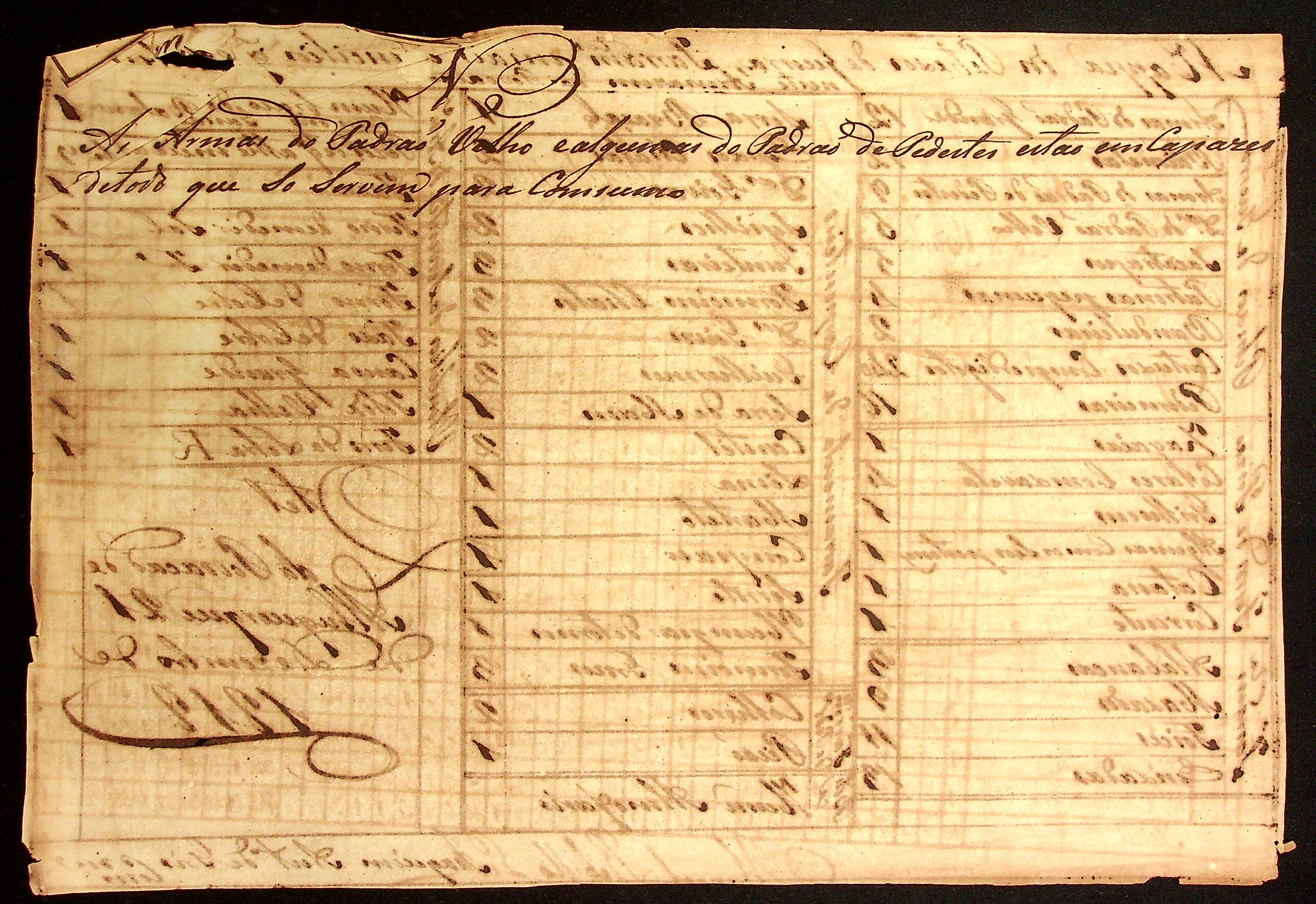 MAPA dos petrexos de guerra, ferramentas e utensílios que se encontram no Armazém da povoação, assinado pelo Comandante Joaquim Antônio de Gois.