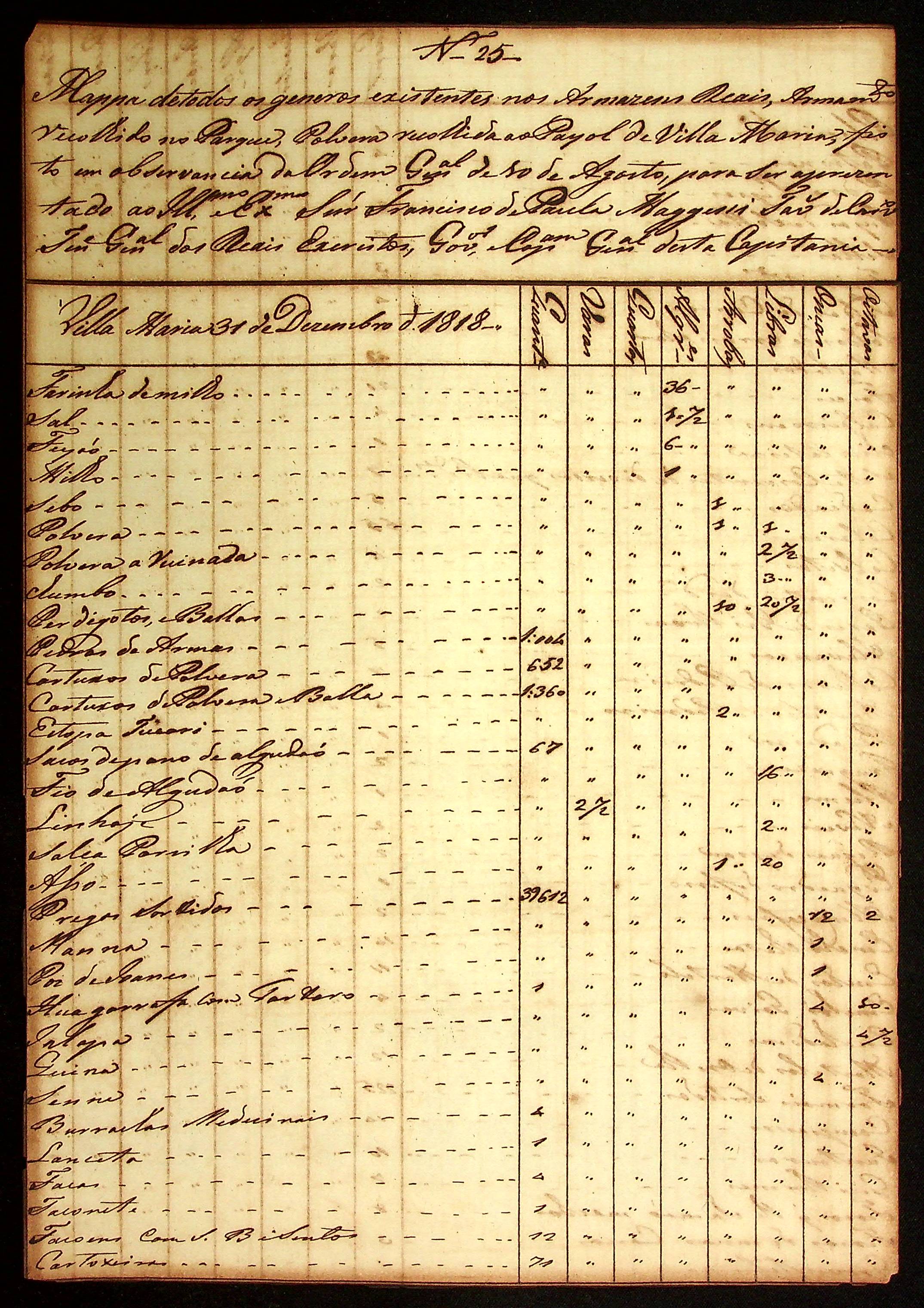 MAPA de todos os gêneros existentes no Armazém Real, assinado pelo Tenente Comandante João Pereira Leite.
