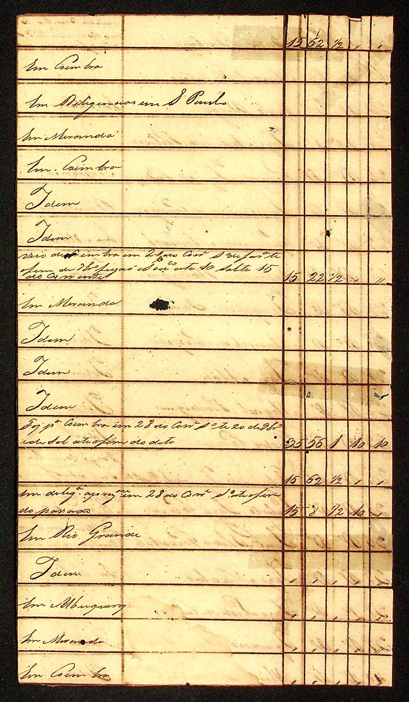 MAPA (incompleto) de Militares assinado por Jerônimo Joaquim Nunes.