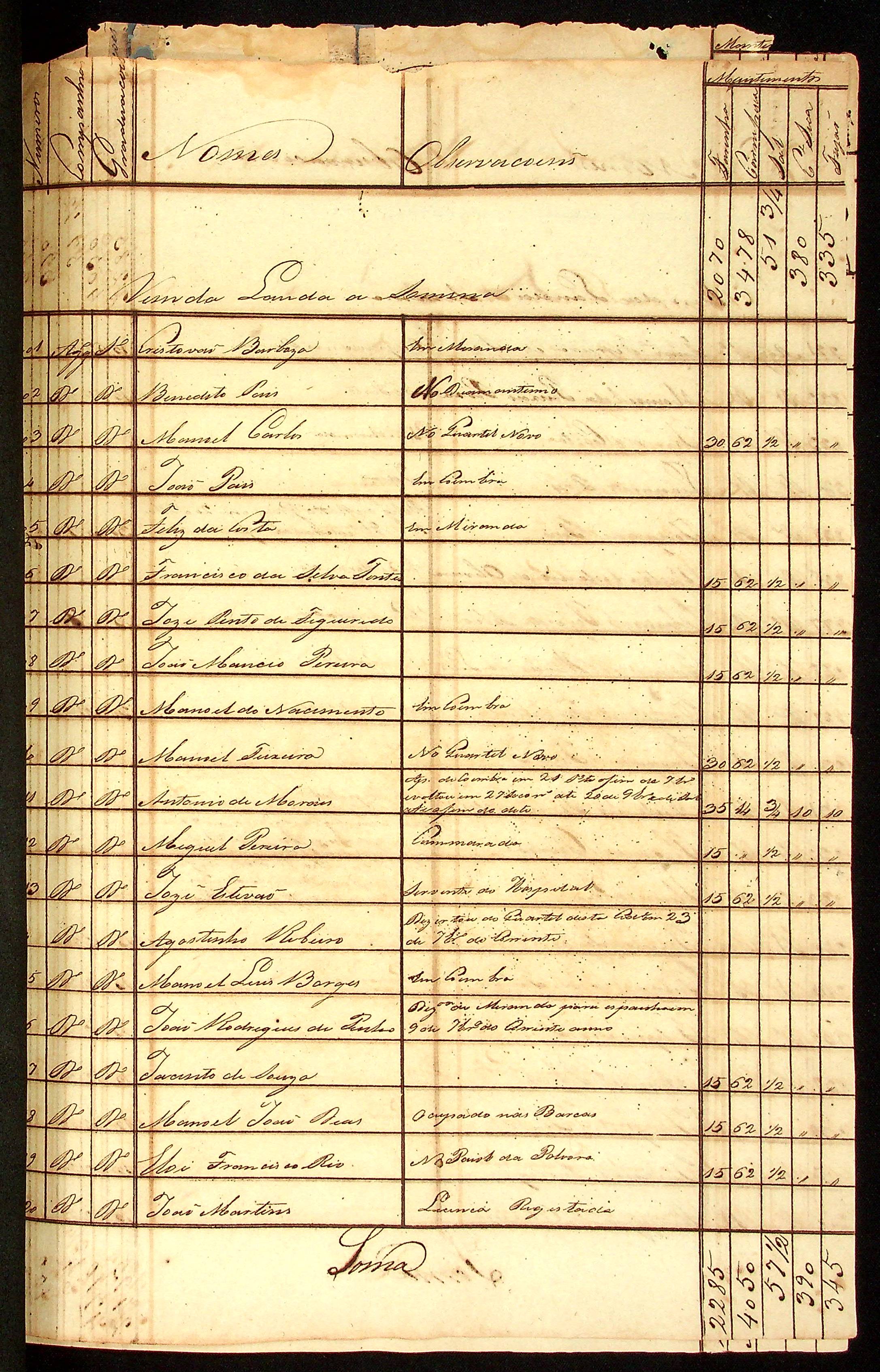 MAPA (incompleto) de Militares assinado por Jerônimo Joaquim Nunes.
