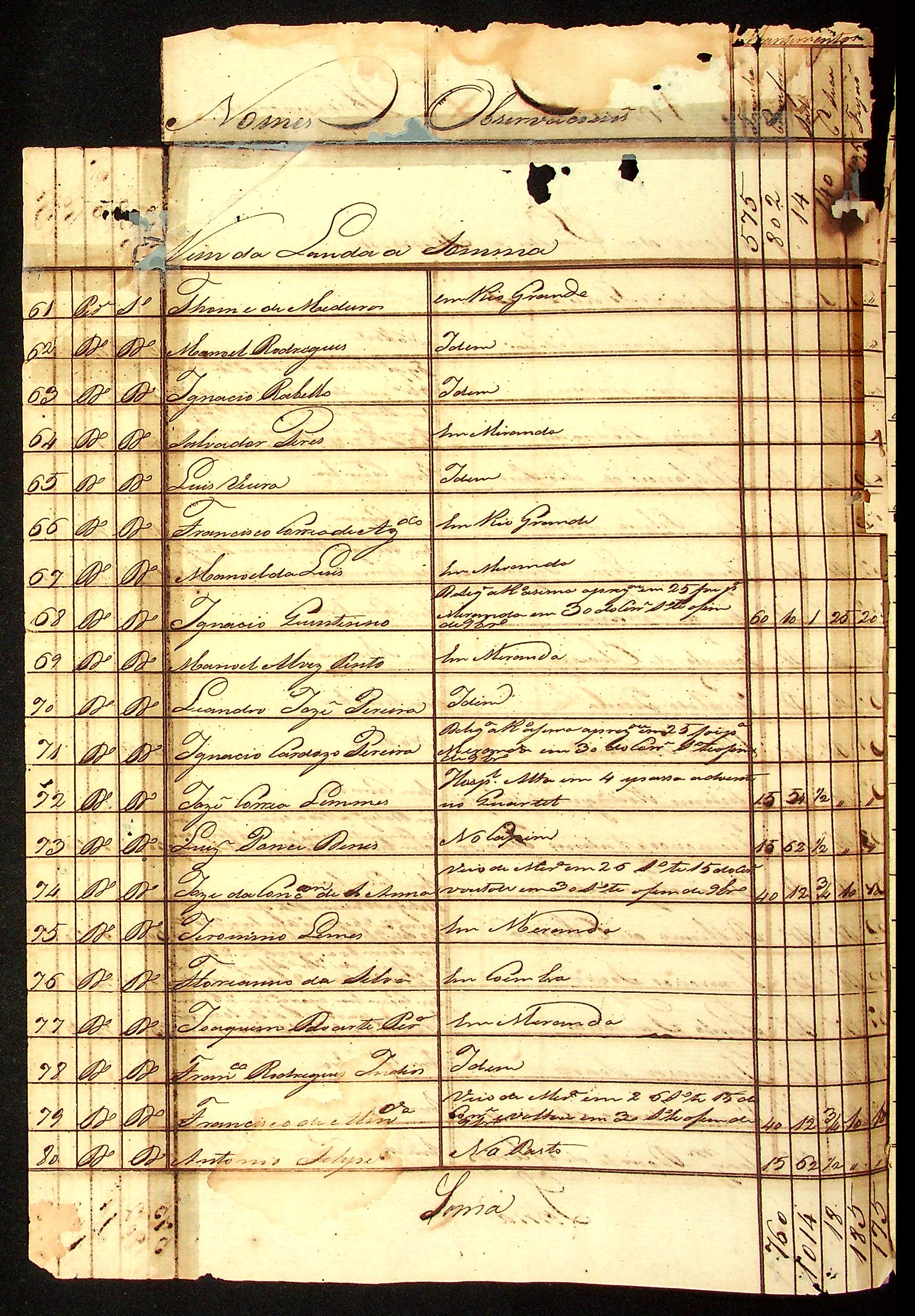 MAPA (incompleto) de Militares assinado por Jerônimo Joaquim Nunes.