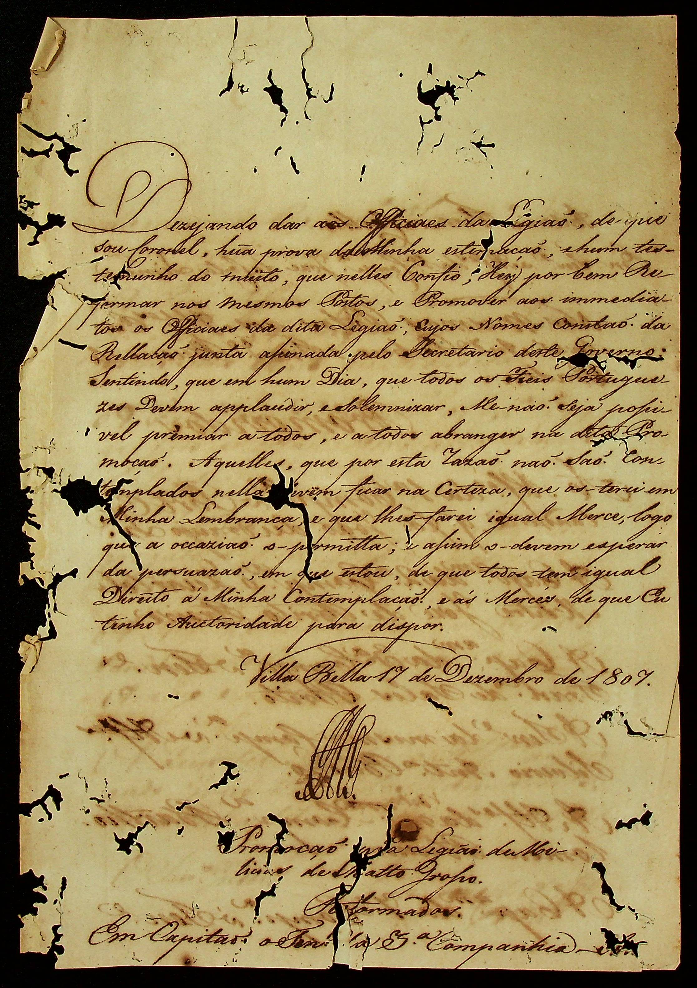 NOMEAÇÃO de postos dentro da Legião de Milícias de Mato Grosso.