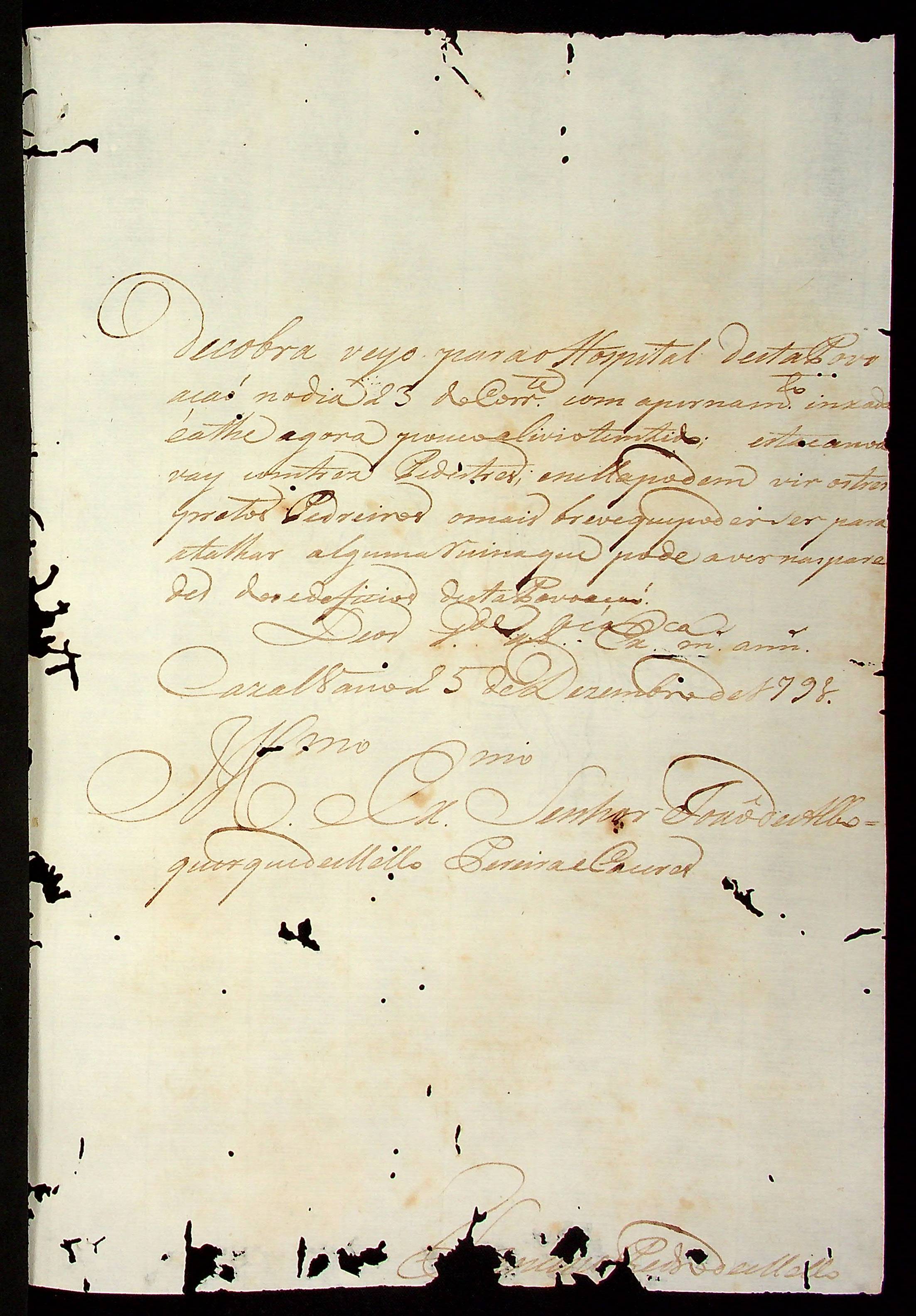 NOTIFICAÇÃO do Mestre de Campo Antônio José Pinto de Figueiredo ao carcereiro da Cadeia Bartolomeu de Souza Brandão.
