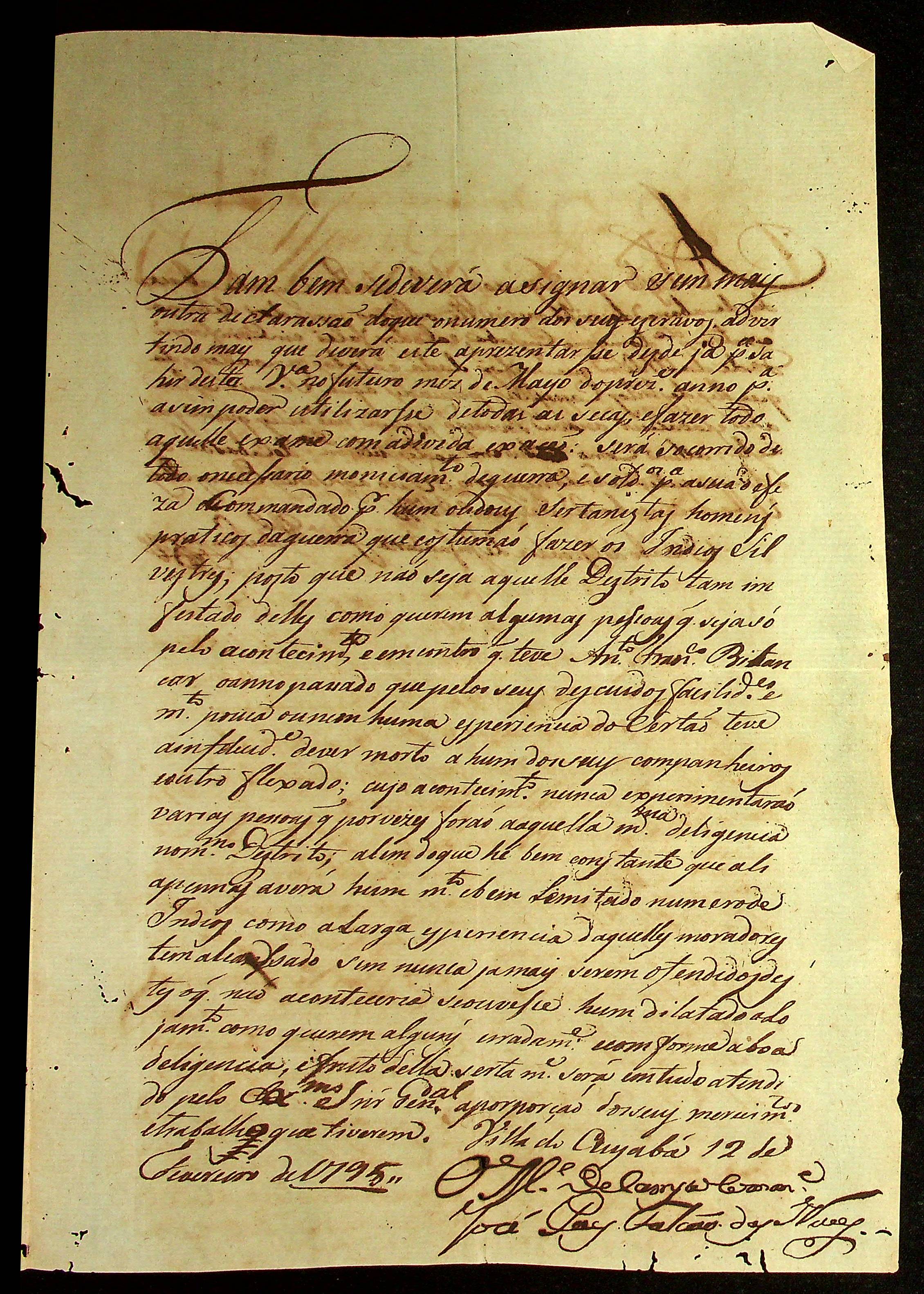 ORDEM do Mestre de Campo José Paes Falcão das Neves a diversos militares que comuniquem aos moradores dos distritos sobre as ordens da Rainha.