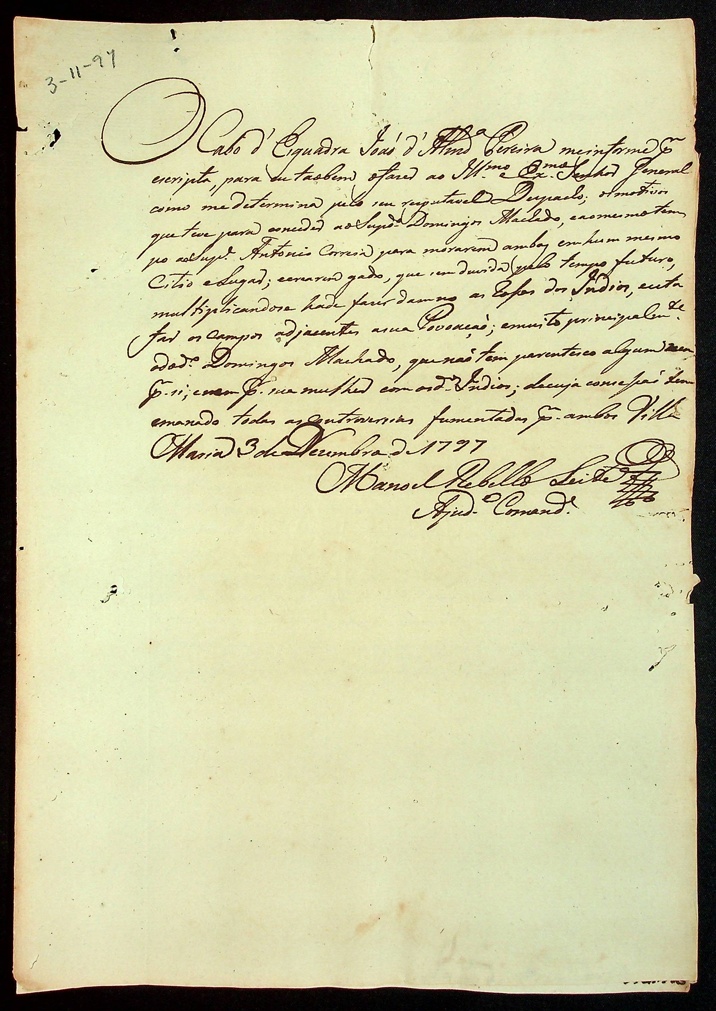 ORDEM do Ajudante e Comandante Manoel Rebello Leite ao Cabo de Esquadra João de Almeida Pereira.
