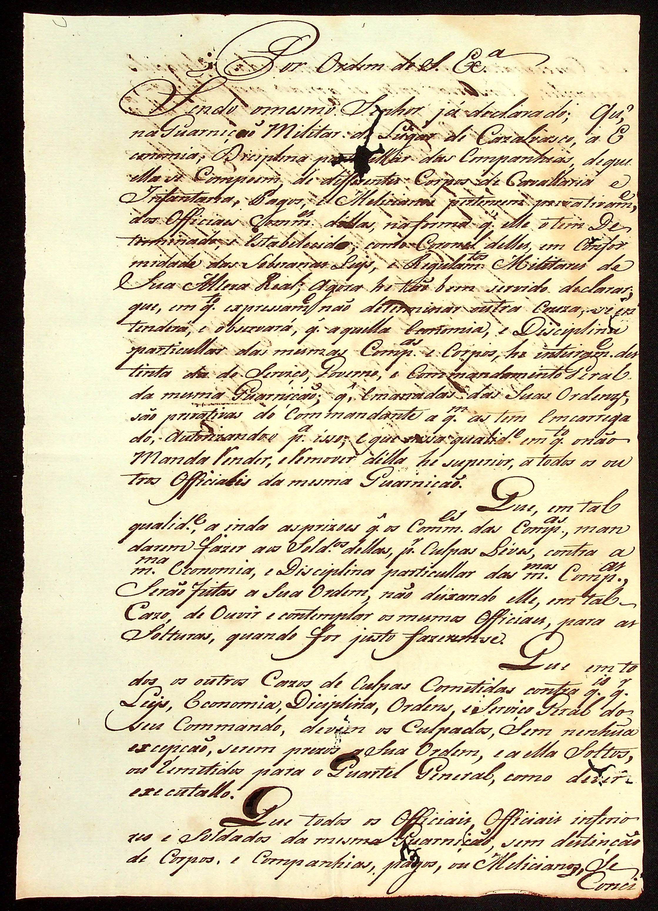 ORDEM publicada pelo [Coronel] Antônio Felipe da Cunha Ponte sobre a disciplina Militar na Guarnição.