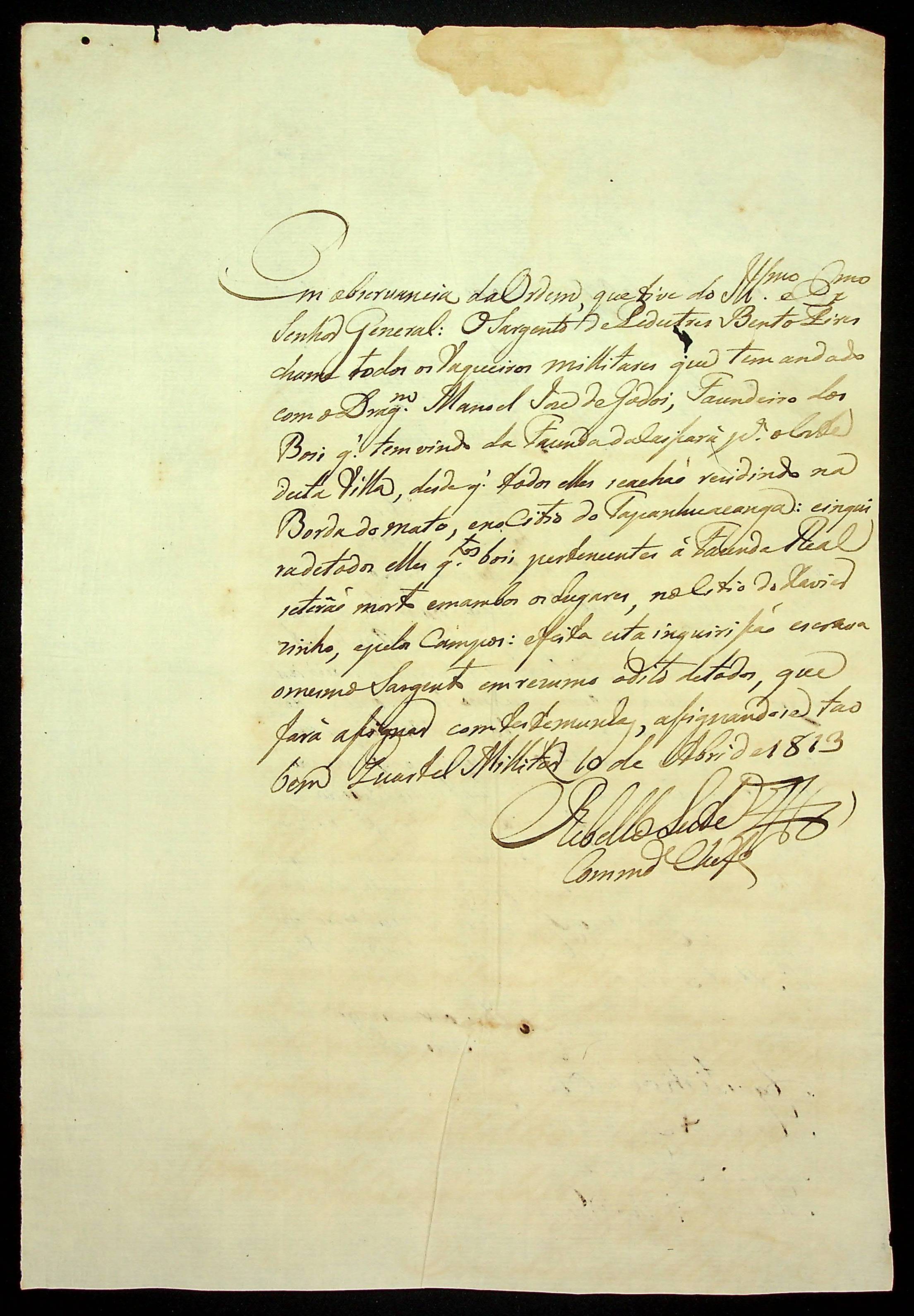 ORDEM do Comandante Chefe Manoel Rabelo Leite ao Sargento de Pedestre Bento Pires.