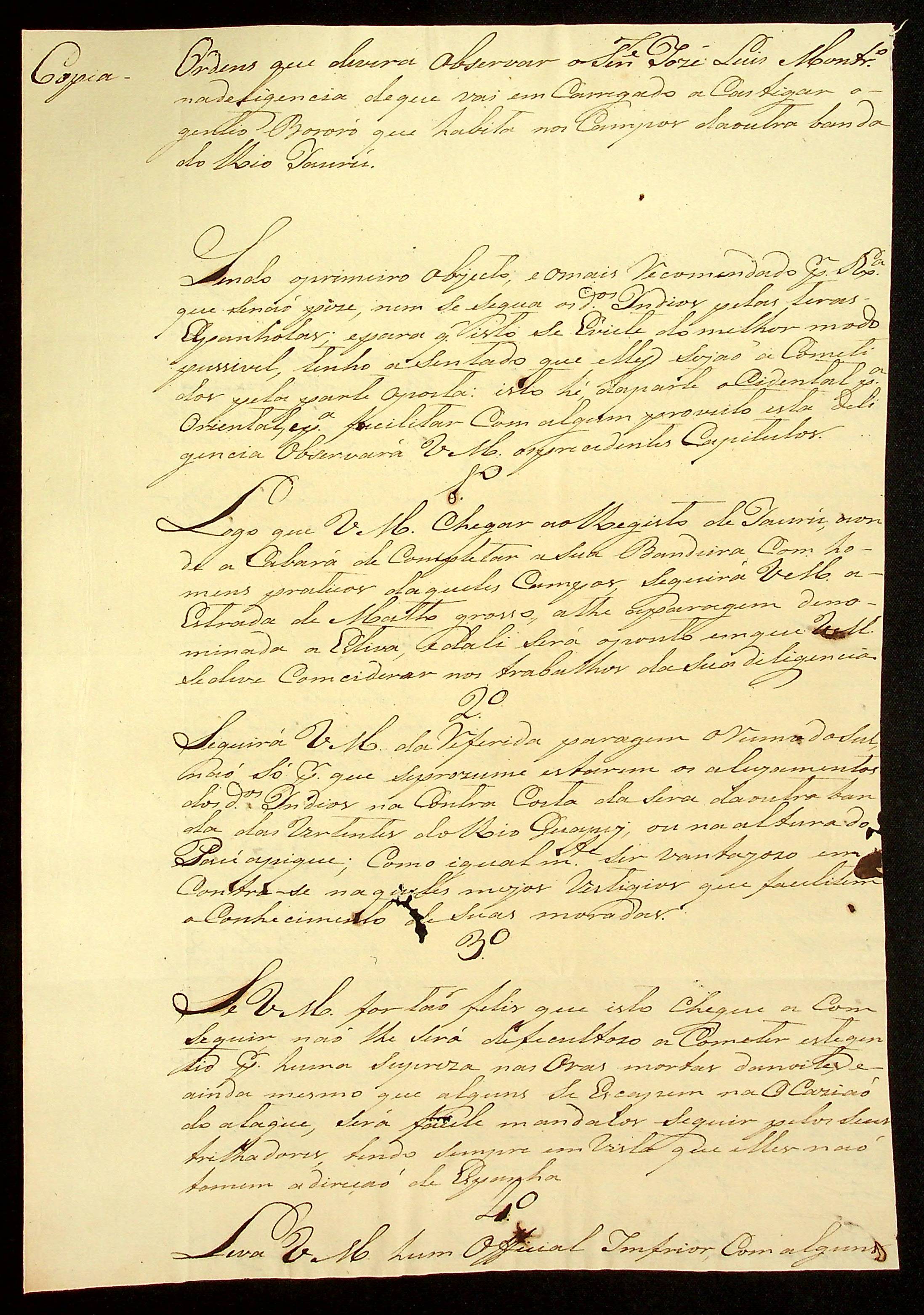 ORDEM Expedida pelo Sargento-mor e Comandante João Pereira Leite ao Tenente José Luiz Monteiro.