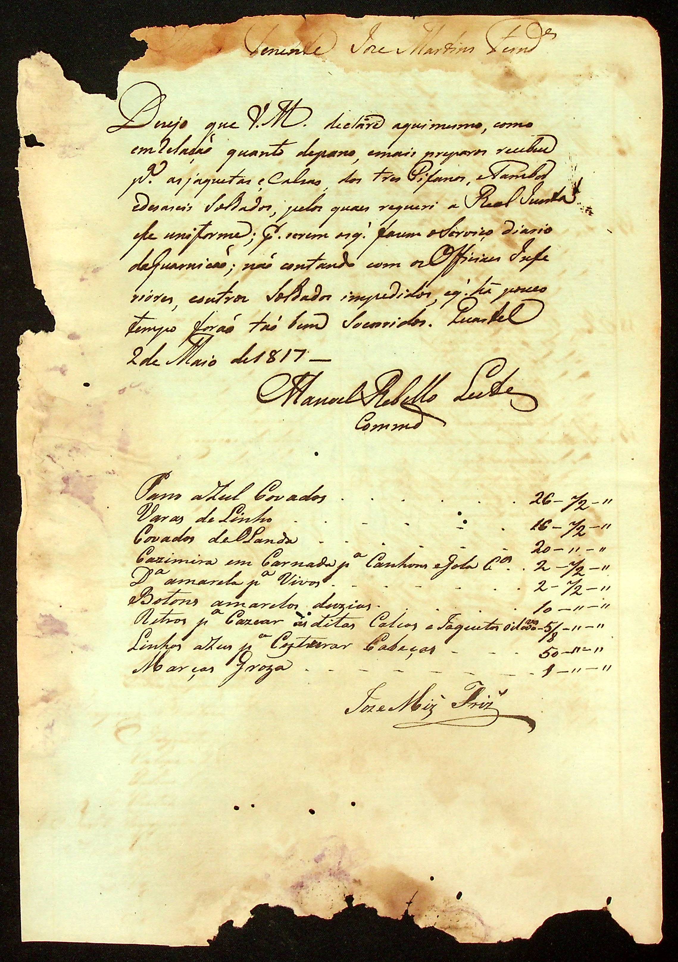 ORDEM do Comandante Manoel [Rabelo] Leite ao Tenente José Martins Fernandes.