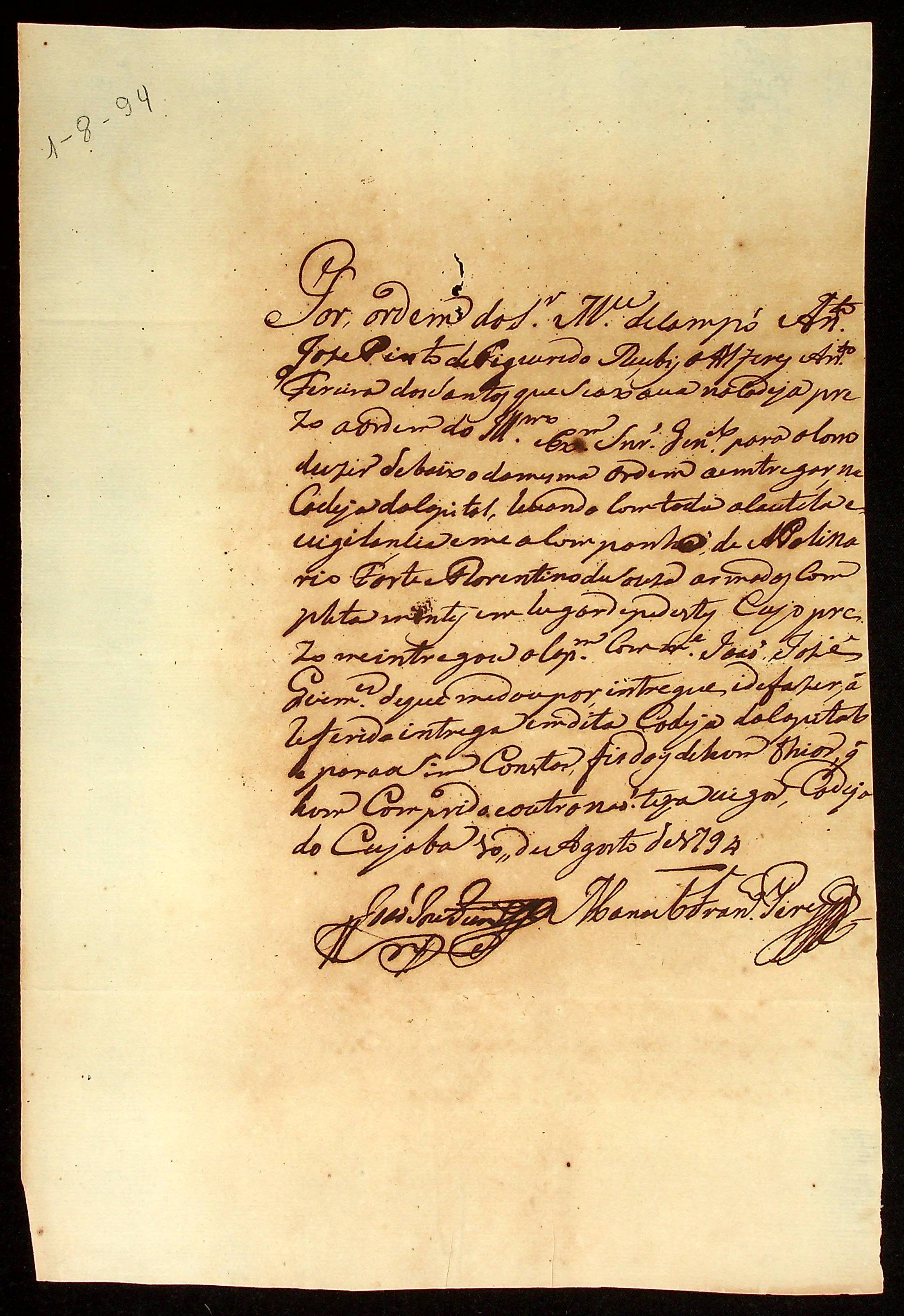 RECIBO assinado por João José Guimarães e Manoel Francisco Pires.