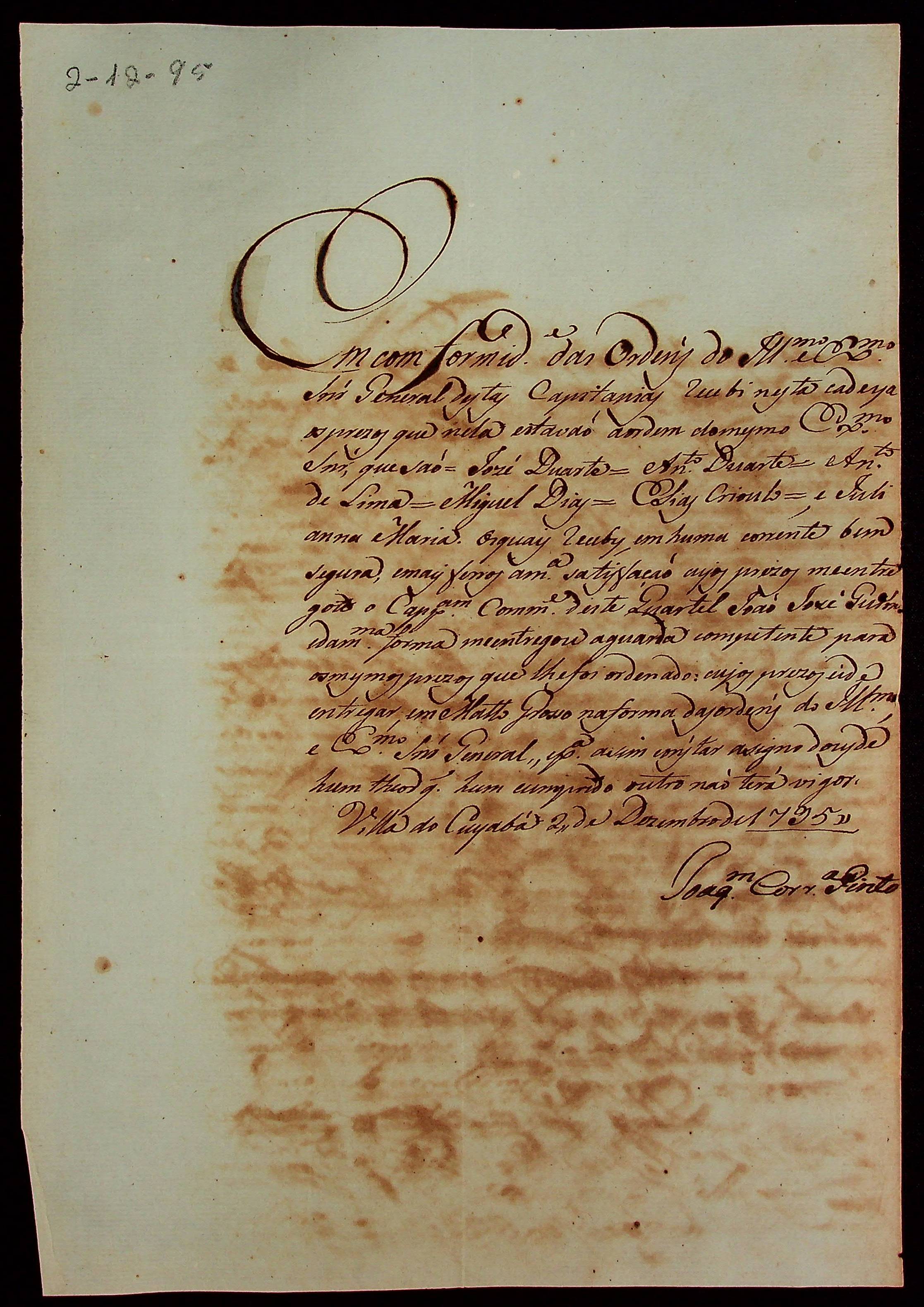 RECIBO expedido por Joaquim Correa Pinto.
