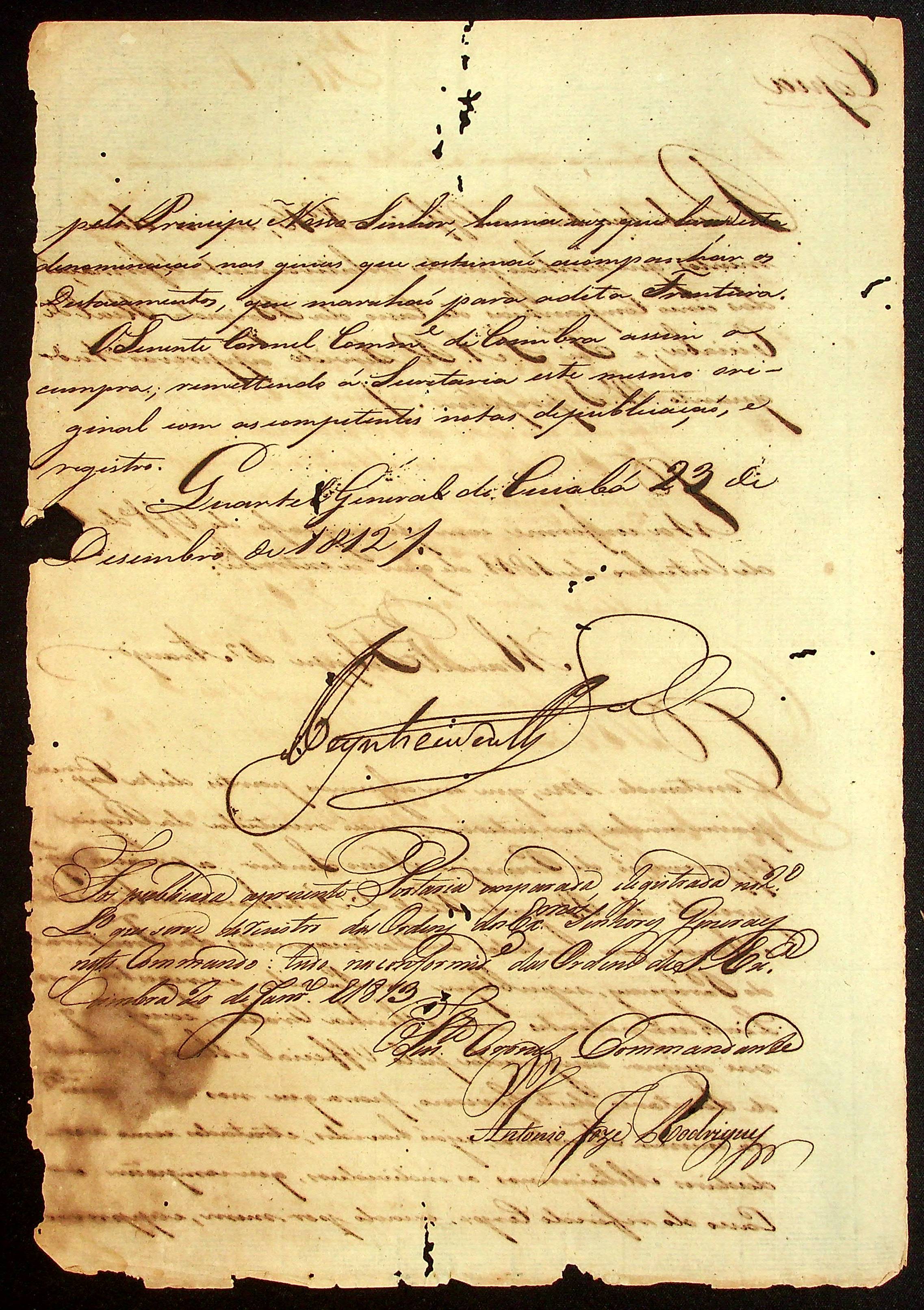 RECIBO expedido pelo Alferes Manoel Filipe de Araújo informando o recebimento de um ofício.