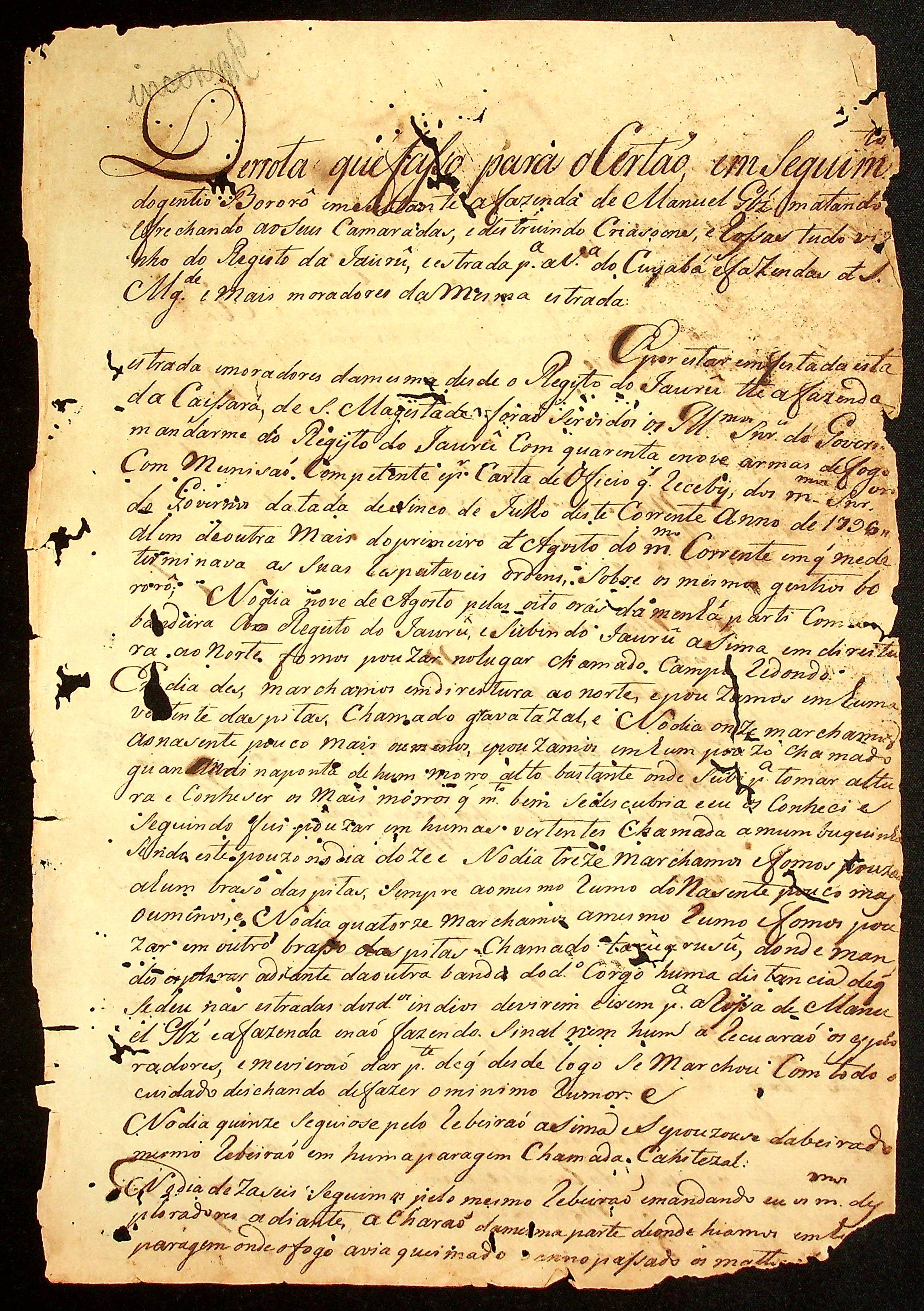 RELATÓRIO (incompleto) versando sobre os insultos do gentio bororo à fazenda de Manoel Gonçalves.