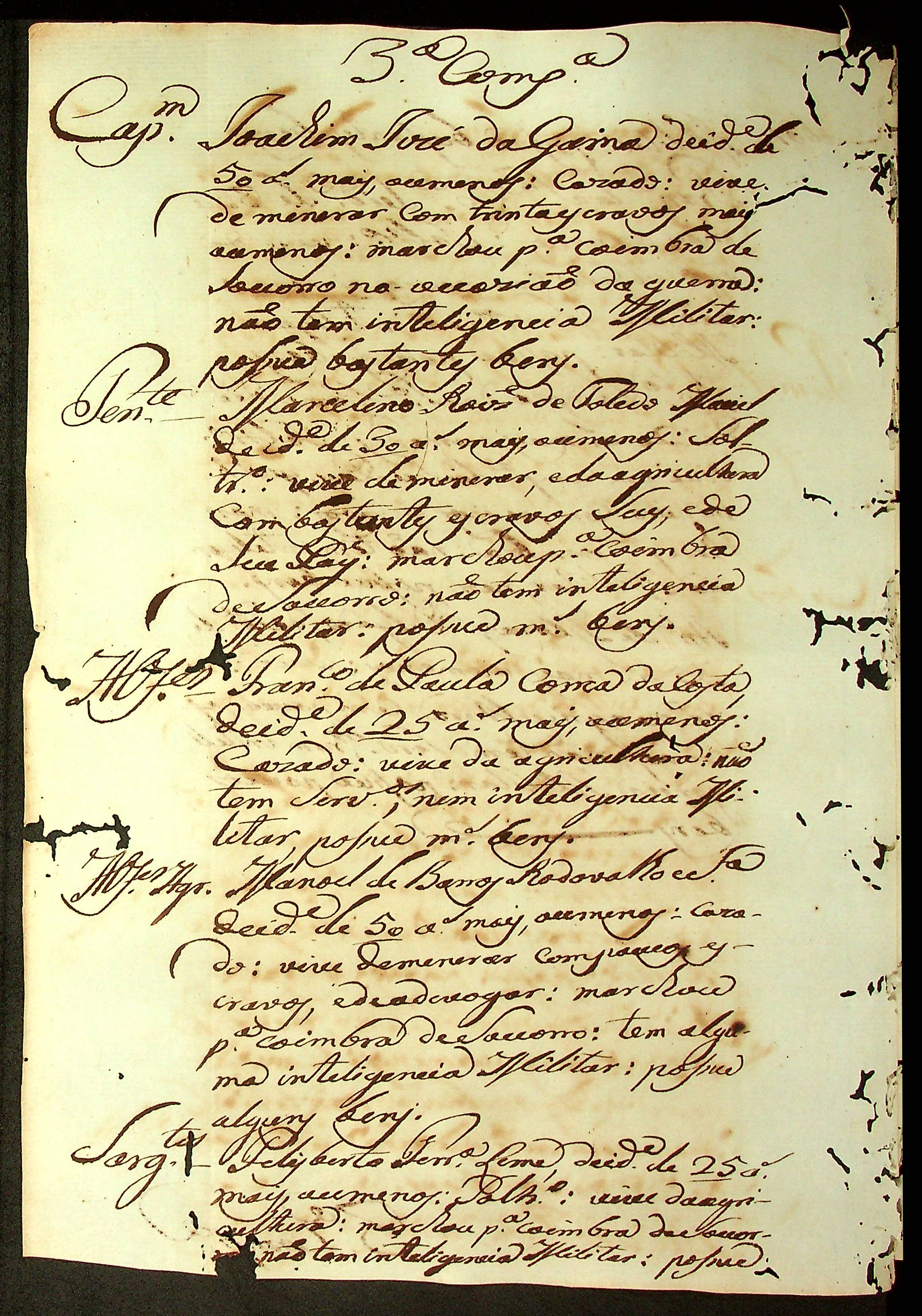 RELATÓRIO do Regimento de Milícias feita pelo Coronel de Milícias José Paes Falcão das Neves.