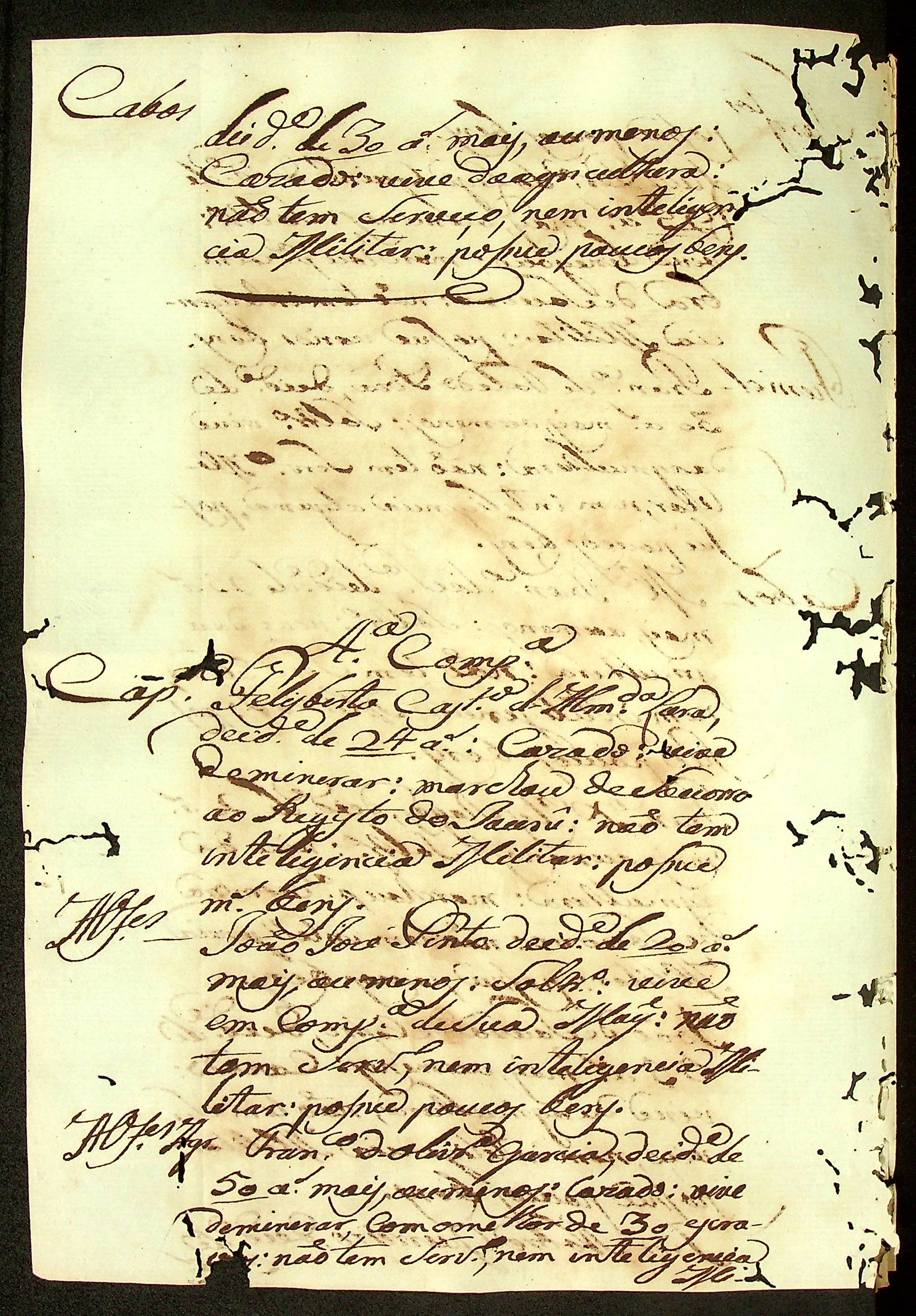 RELATÓRIO do Regimento de Milícias feita pelo Coronel de Milícias José Paes Falcão das Neves.