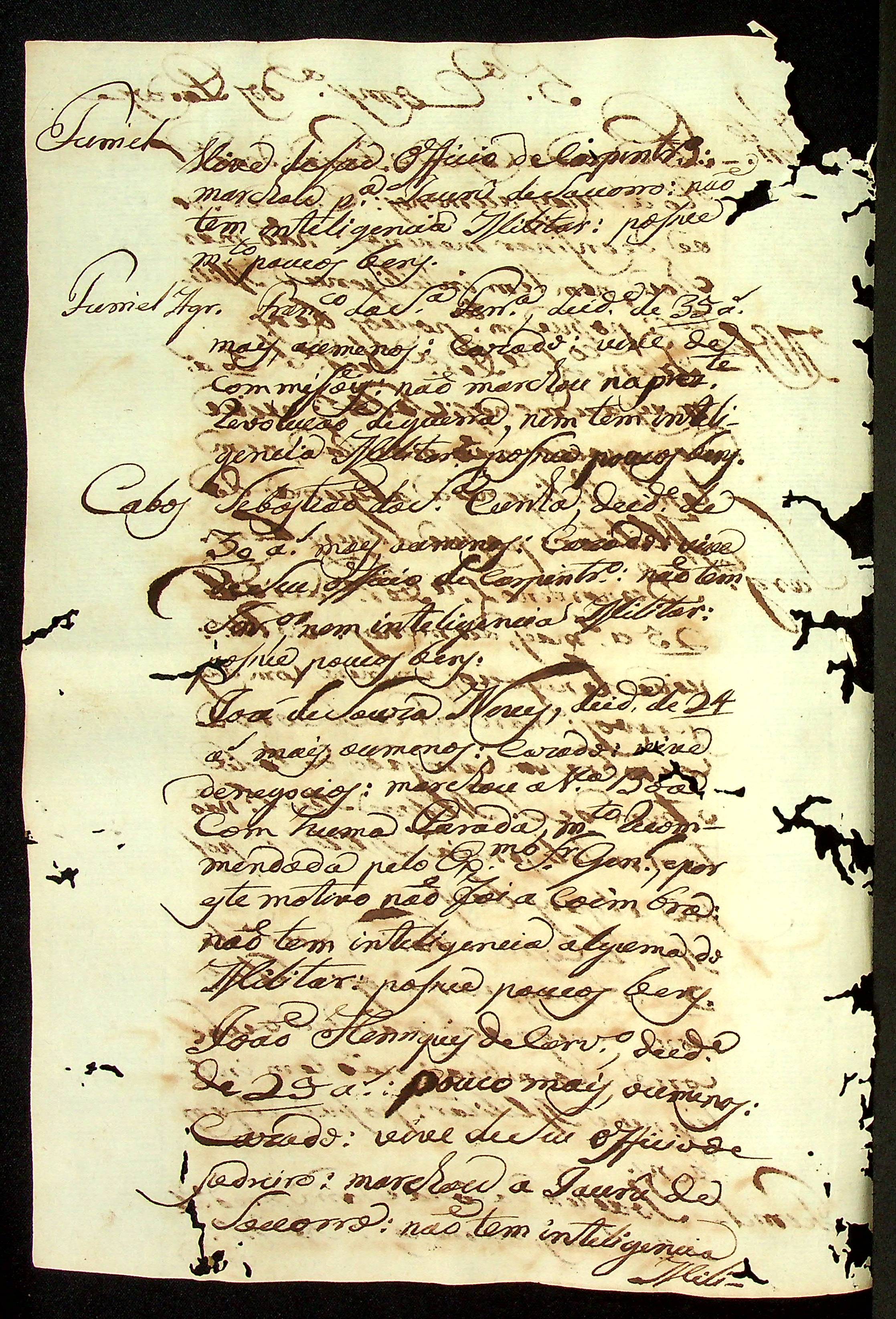 RELATÓRIO do Regimento de Milícias feita pelo Coronel de Milícias José Paes Falcão das Neves.