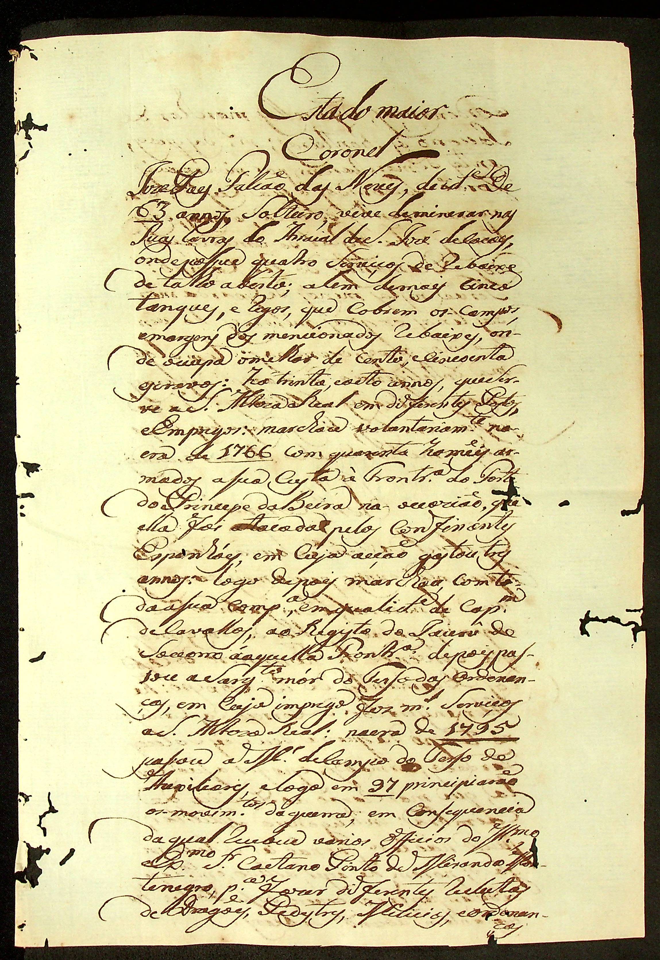 RELATÓRIO do Regimento de Milícias feita pelo Coronel de Milícias José Paes Falcão das Neves.