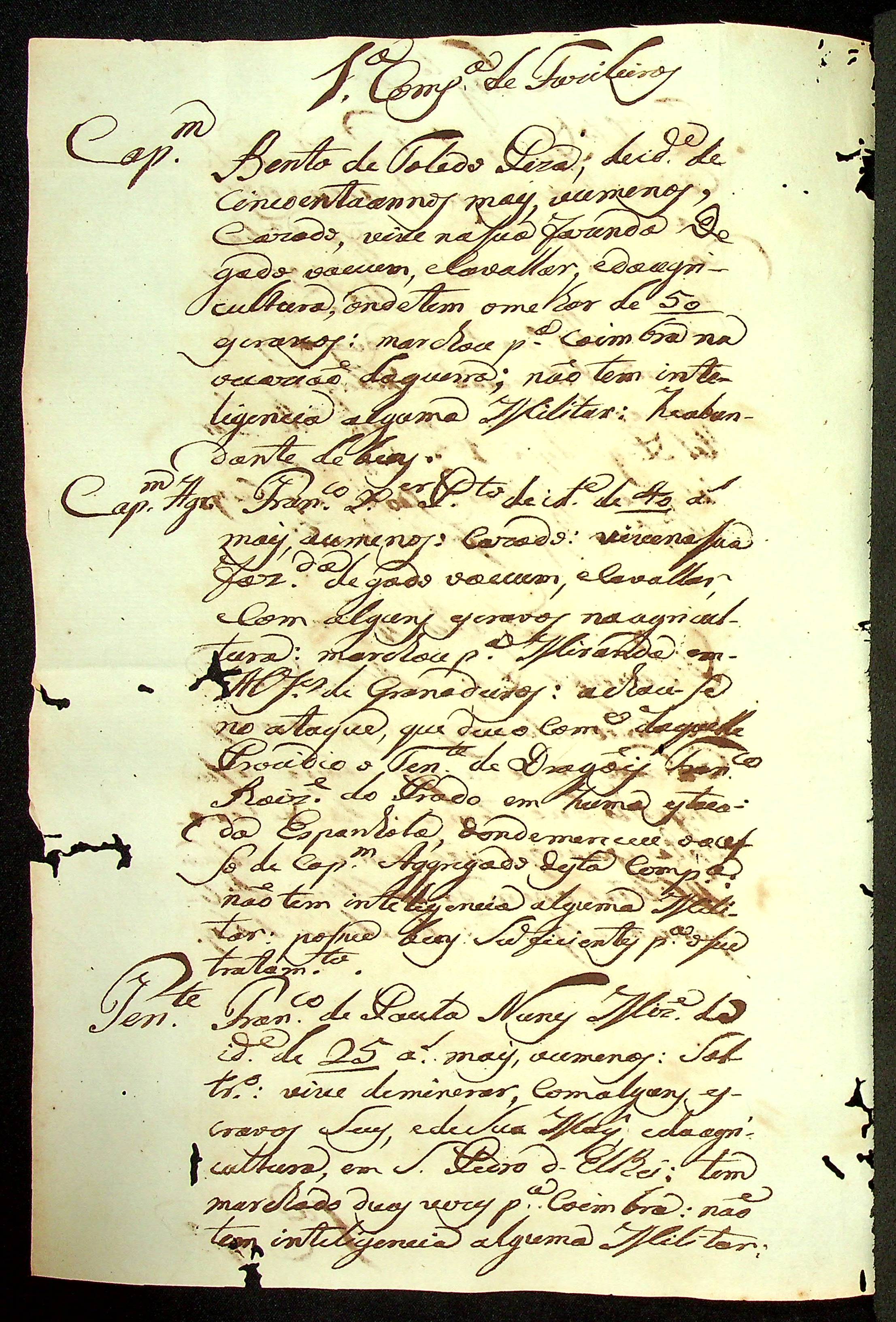 RELATÓRIO do Regimento de Milícias feita pelo Coronel de Milícias José Paes Falcão das Neves.