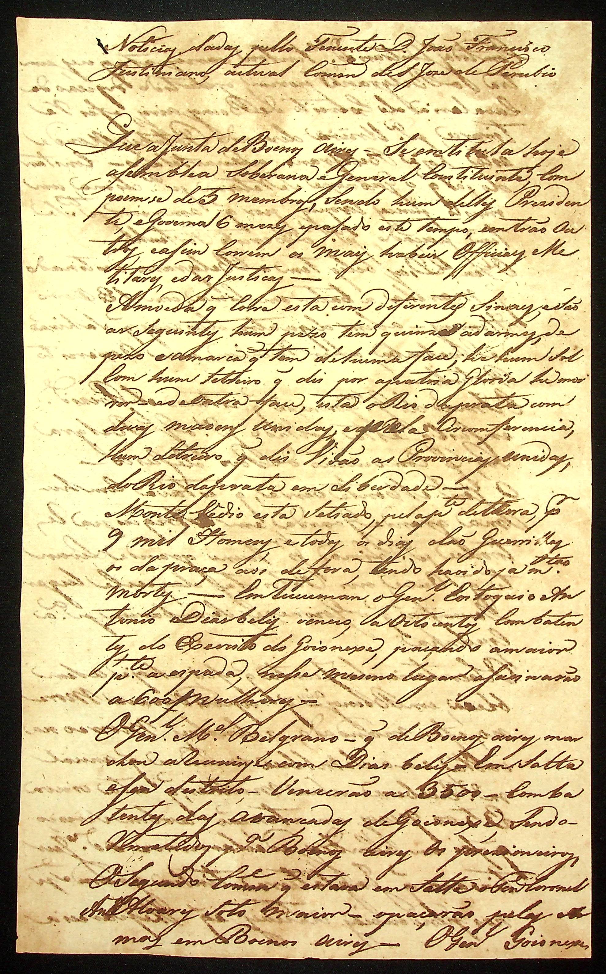 RELATÓRIO feito por [Flaviano José de mato Coelho] das notícias dadas pelo Tenente João Francisco Justiniano Comandante de São José do Porubi.