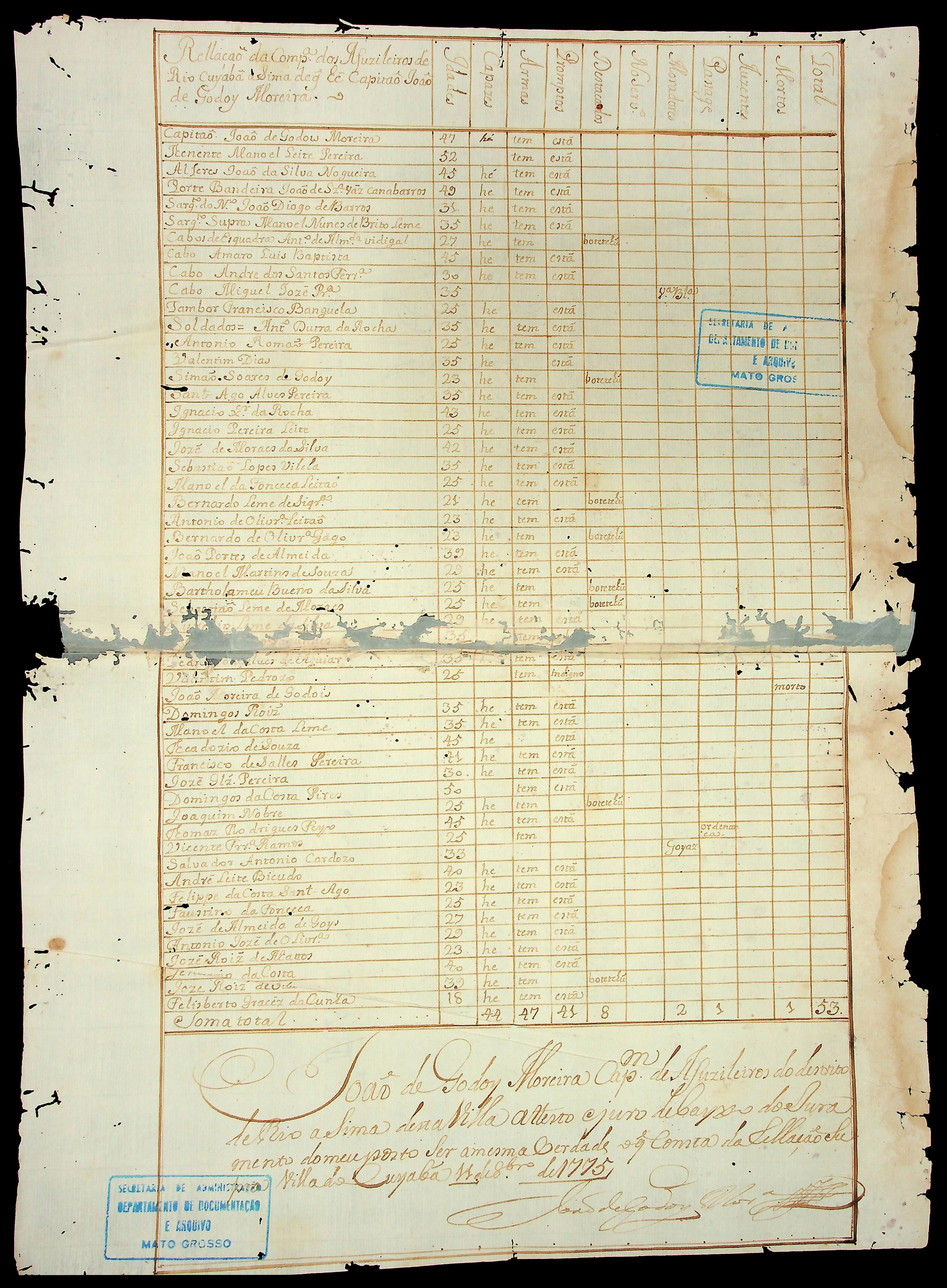 RELAÇÃO da Companhia dos Fuzileiros do Rio Cuiabá Acima feito pelo do Capitão João Godoy Moreira.
