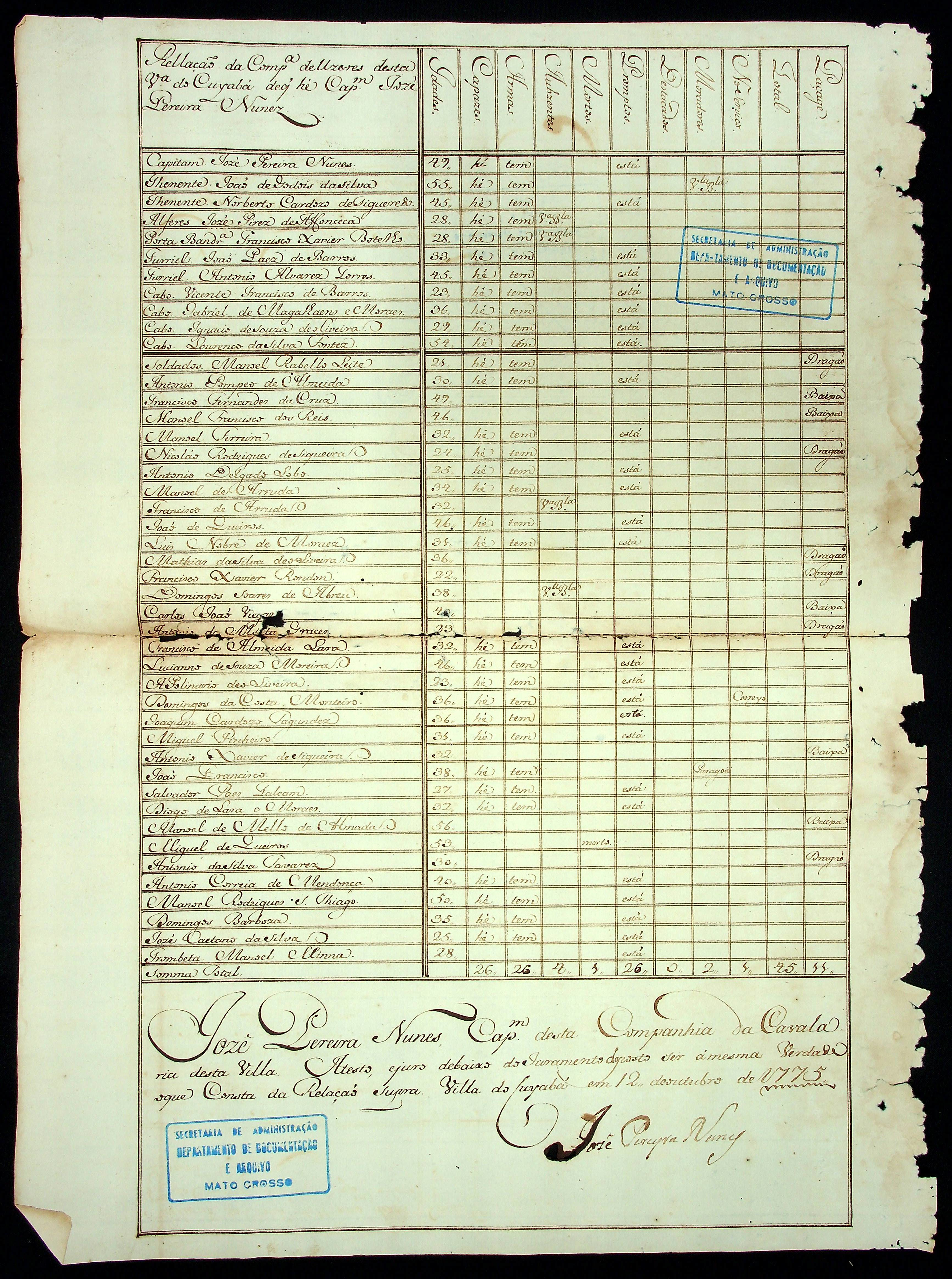 RELAÇÃO da Companhia de Uzares feita pelo Capitão José Pereira Nunes.