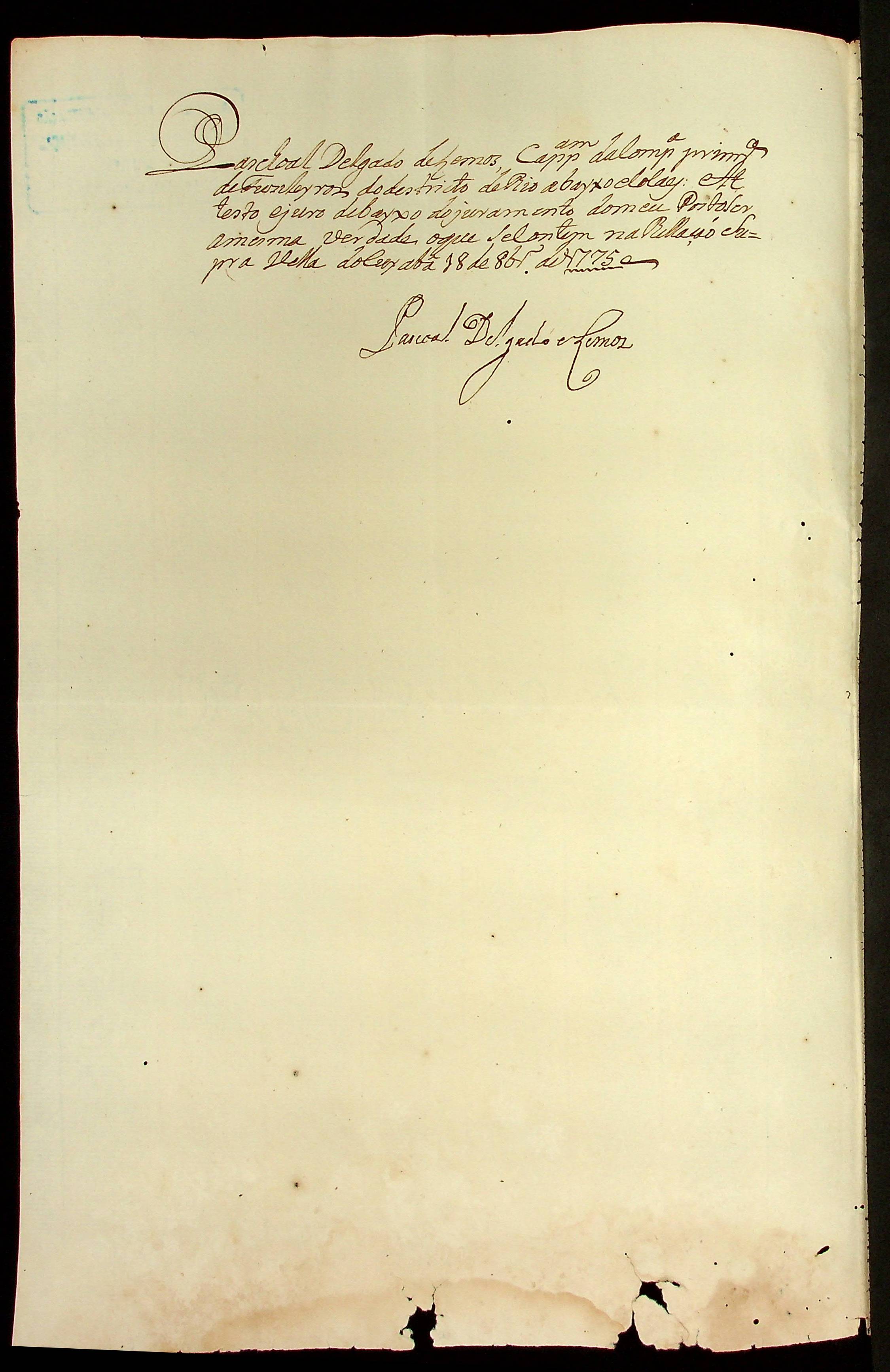 RELAÇÃO dos oficiais e Soldados da 1ª Companhia de Fuzileiros e Auxiliares feita pelo Capitão Pascoal Delgado de Lemos.