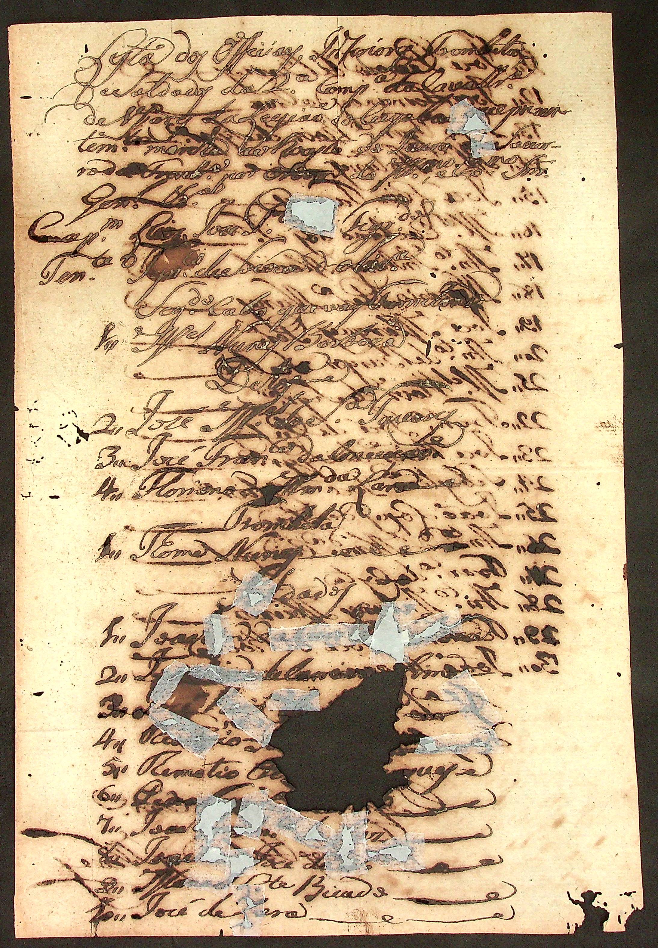 RELAÇÃO dos Cabos e Soldados que por ordem de Vossa Excelência no ato da mostra de 20 de [?] terão baixa pelos seus anos, moléstias […].