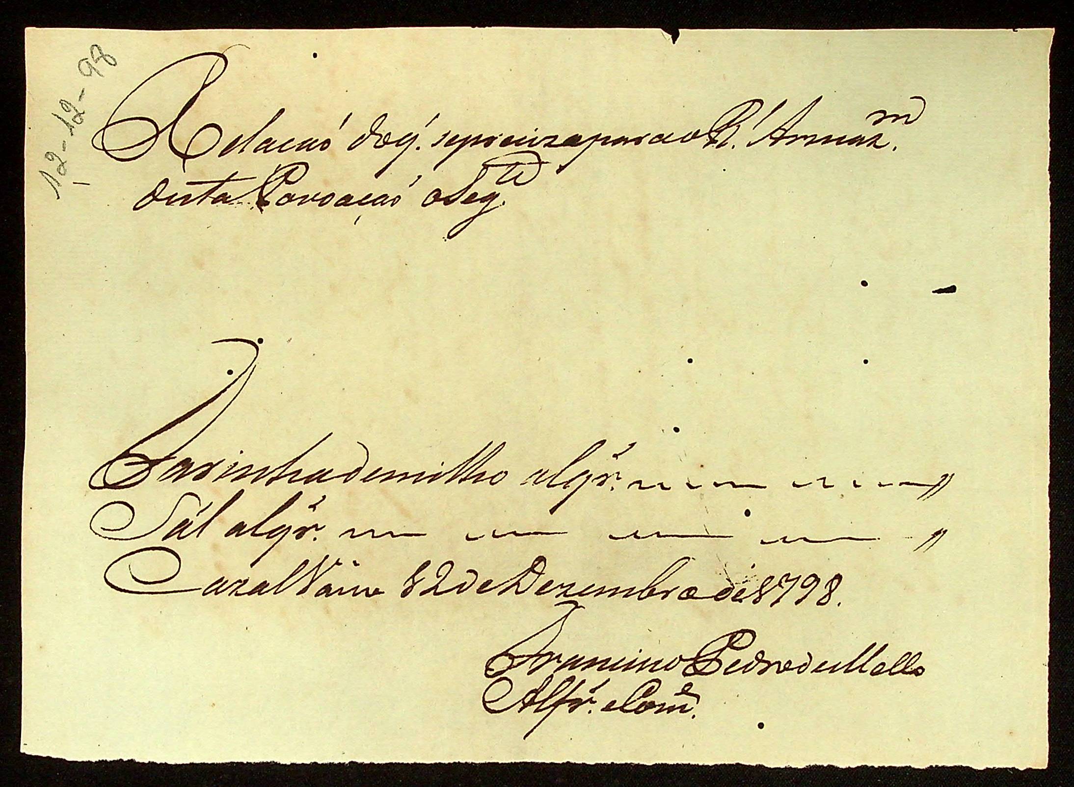 RELAÇÃO do que se precisa ao Real Armazém desta povoação expedida pelo Alferes e Comandante Francisco Pedro de Melo.