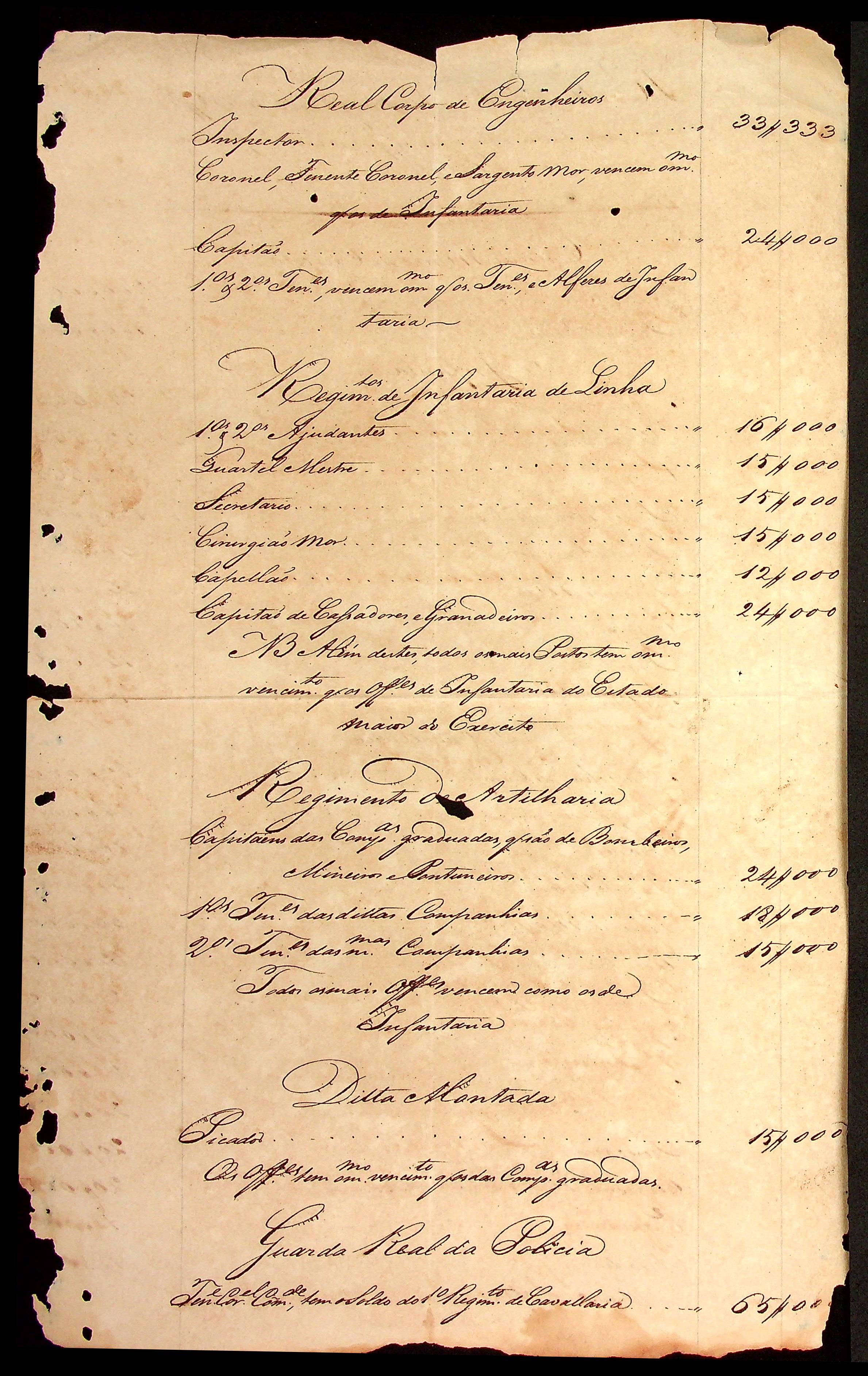 RELAÇÃO dos soldos que vencem os Oficiais desta Corte e Capitania pelas suas respectivas patentes, assinada por João Valentim de Faria Souza Lobato.