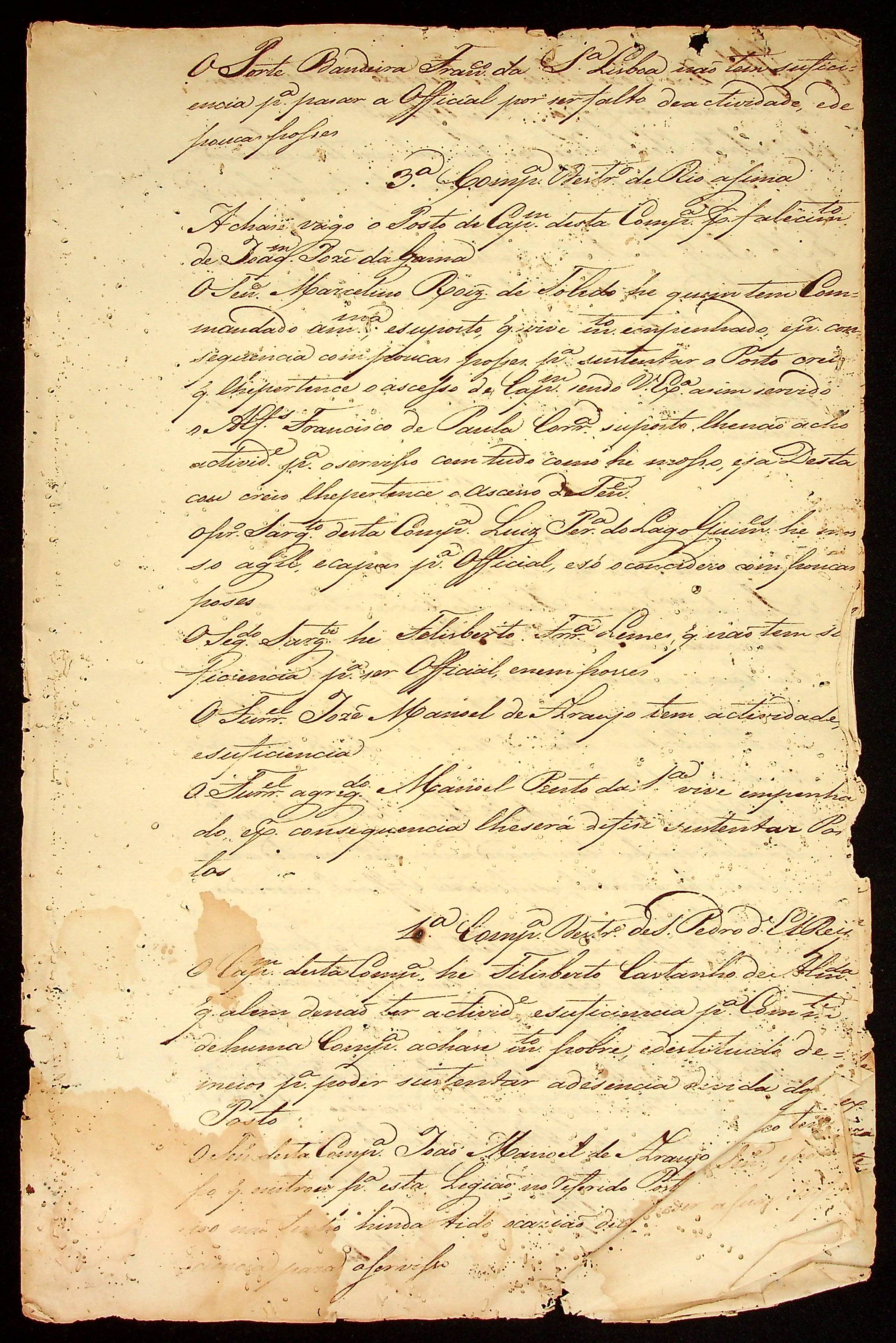 RELAÇÃO (incompleta) das Companhias Militares assinada pelo Tenente-Coronel e Comandante da Legião Gabriel da Fonseca Souza.