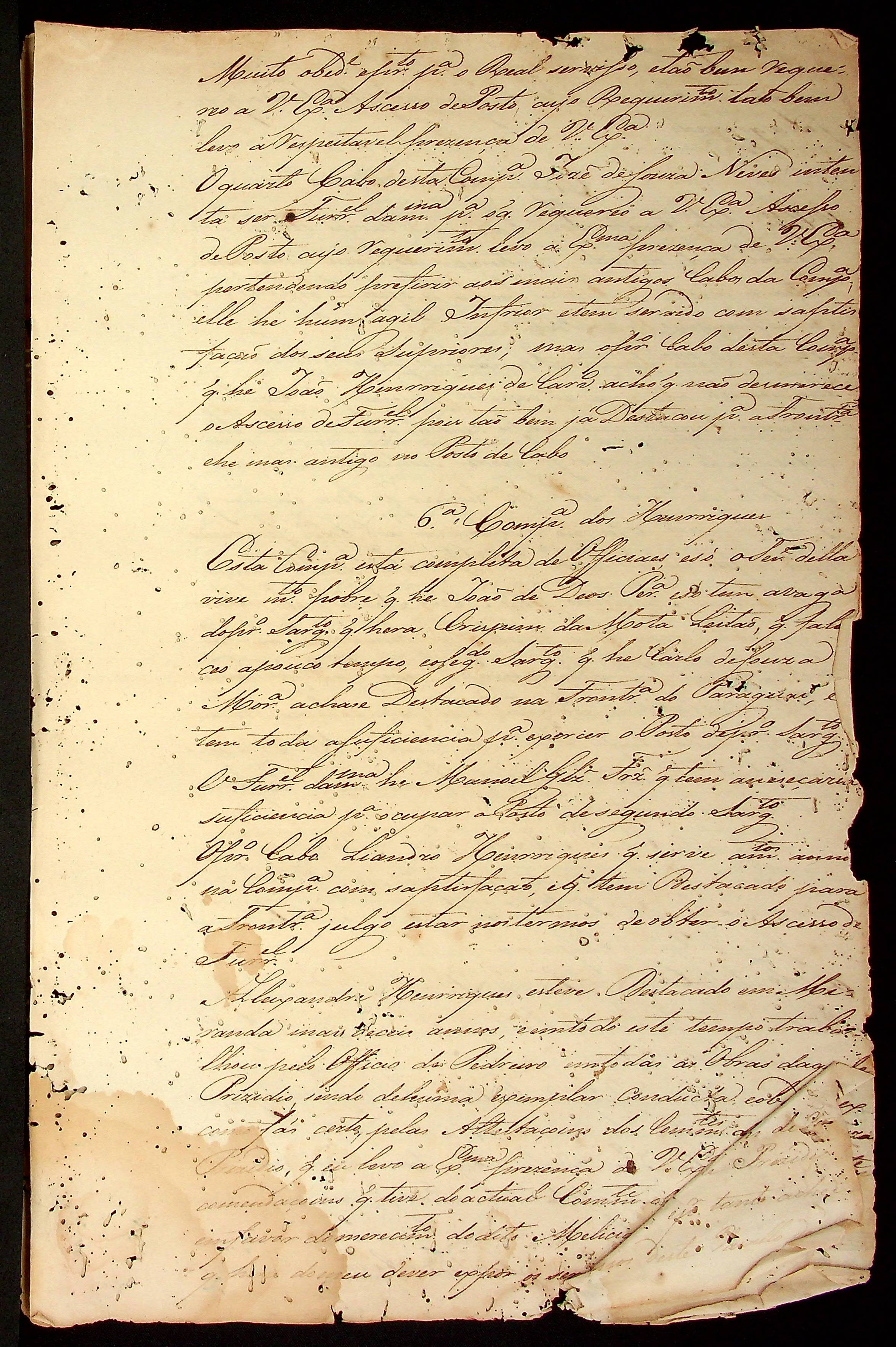 RELAÇÃO (incompleta) das Companhias Militares assinada pelo Tenente-Coronel e Comandante da Legião Gabriel da Fonseca Souza.