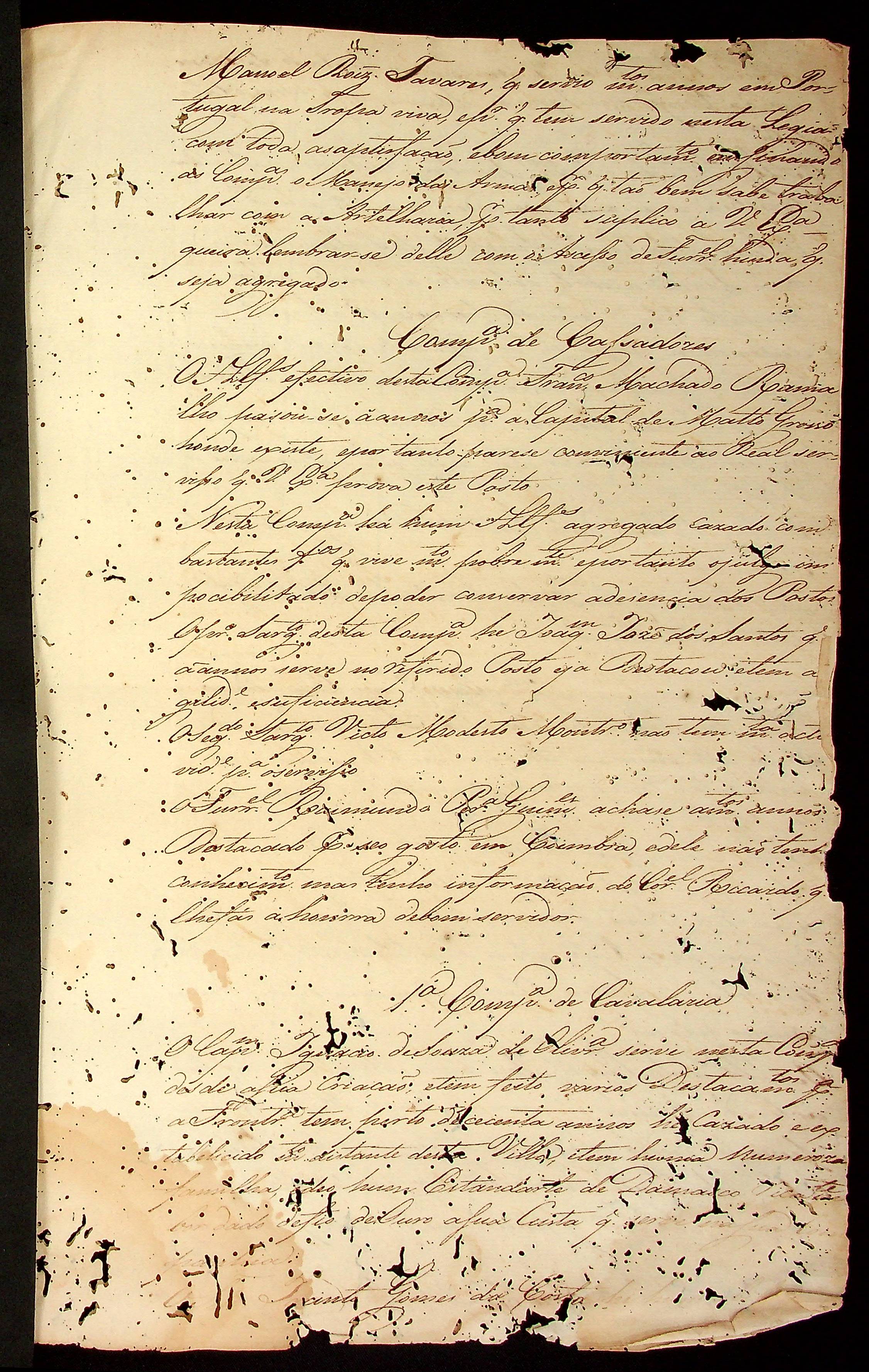 RELAÇÃO (incompleta) das Companhias Militares assinada pelo Tenente-Coronel e Comandante da Legião Gabriel da Fonseca Souza.