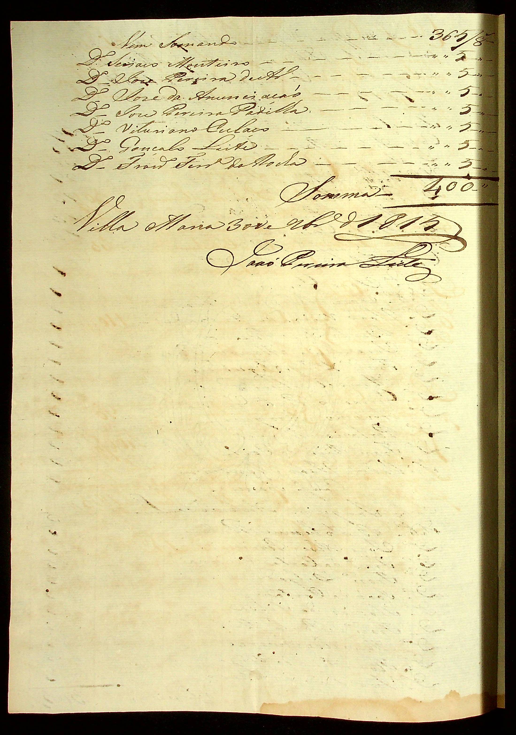 RELAÇÃO dos oficiais inferiores e Soldados que receberam a carta dos seus Soldos assinado pelo Sargento-mor João Pereira Leite.