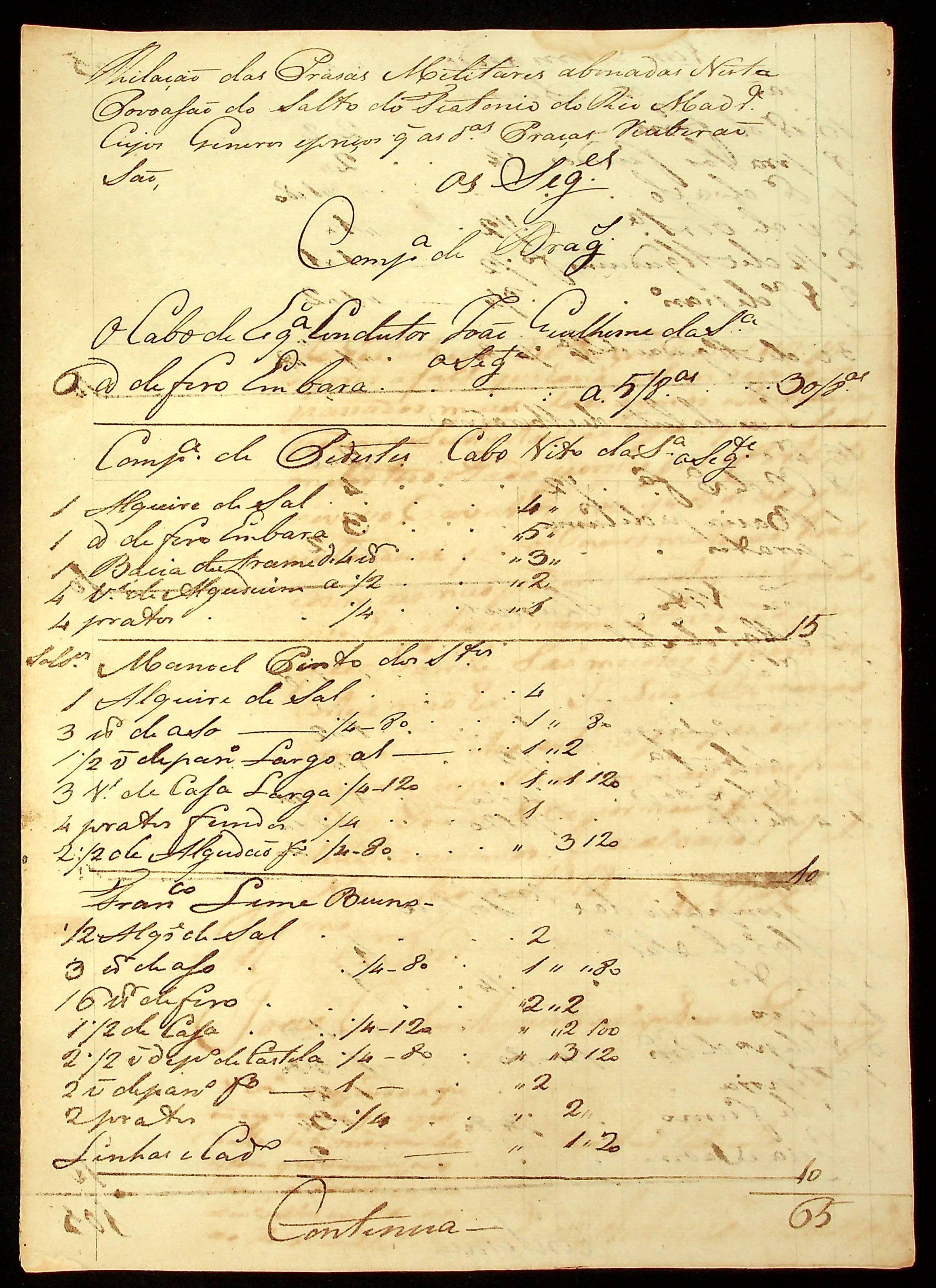 RELAÇÃO dos praças militares abonados da povoação do Salto do Teotonio do Rio Madeira.