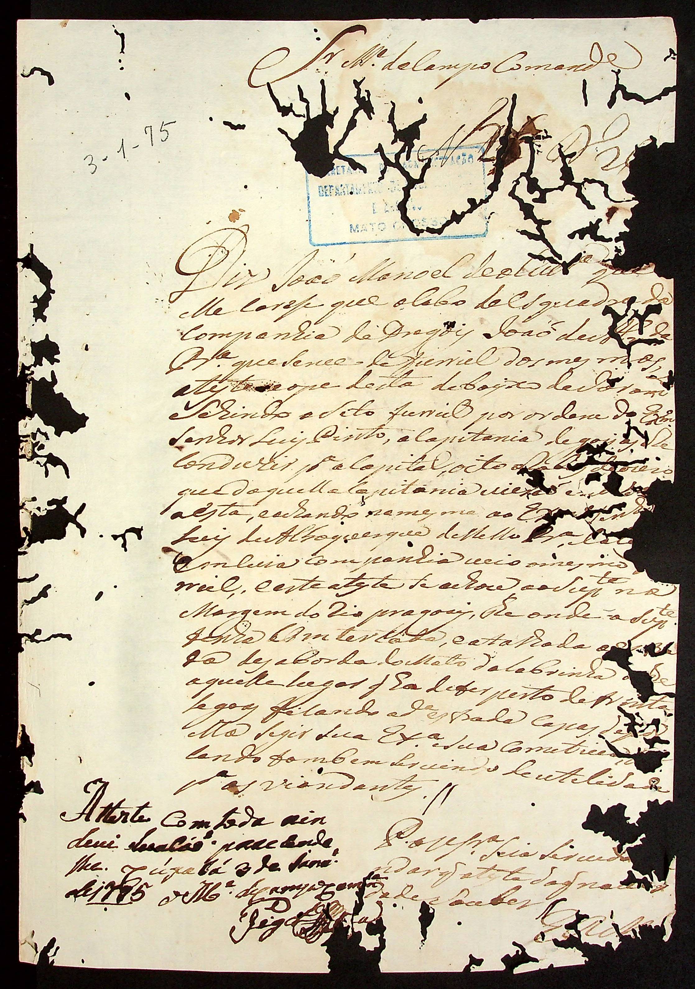REQUERIMENTO de João Manuel de Oliveira ao atestado ao Mestre de Campo.