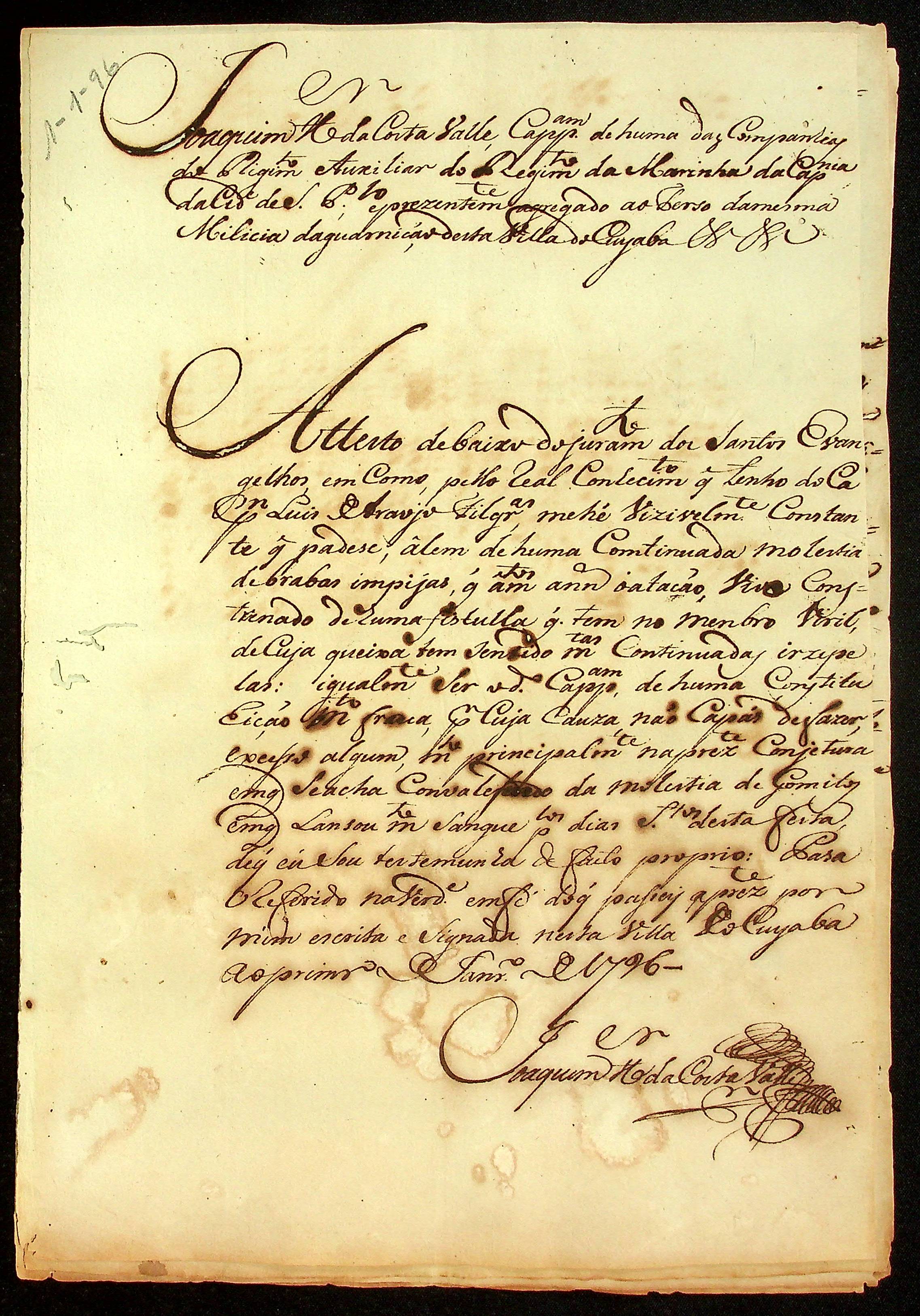 REQUERIMENTO do Capitão Luís de Araújo [Filgueira] feito ao Mestre de Campo.