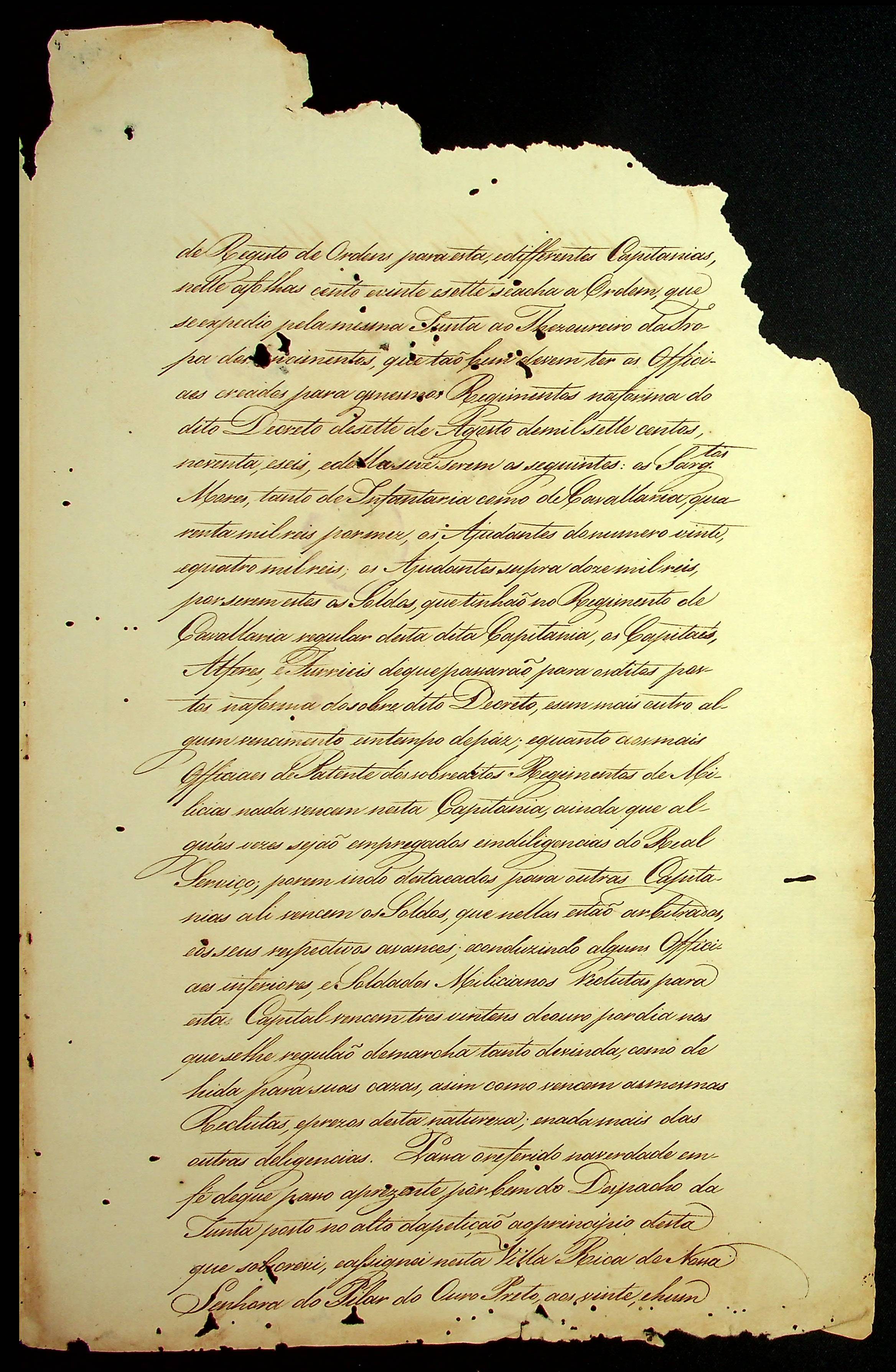 REQUERIMENTO do Mestre de Campo Comandante da Região de Milícias de Voluntários da Vila do Cuiabá José Paes Falcão.