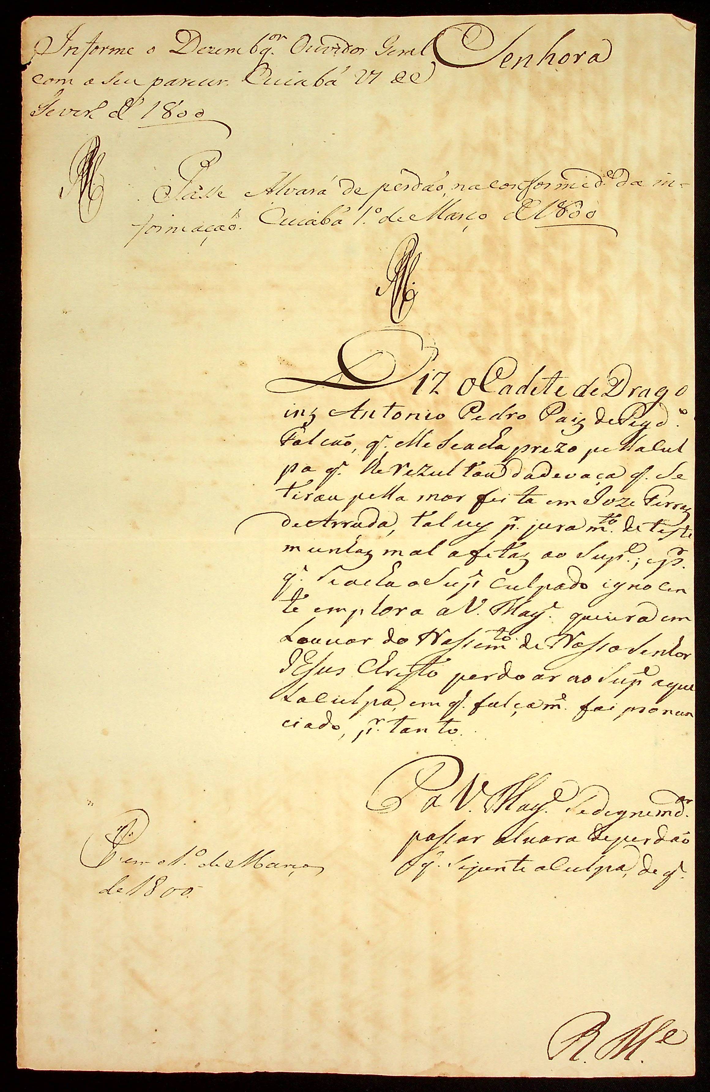 REQUERIMENTO do Cadete de Dragões Antônio Pedro Paes de Figueiredo Falcão à [Rainha Dona Maria I].