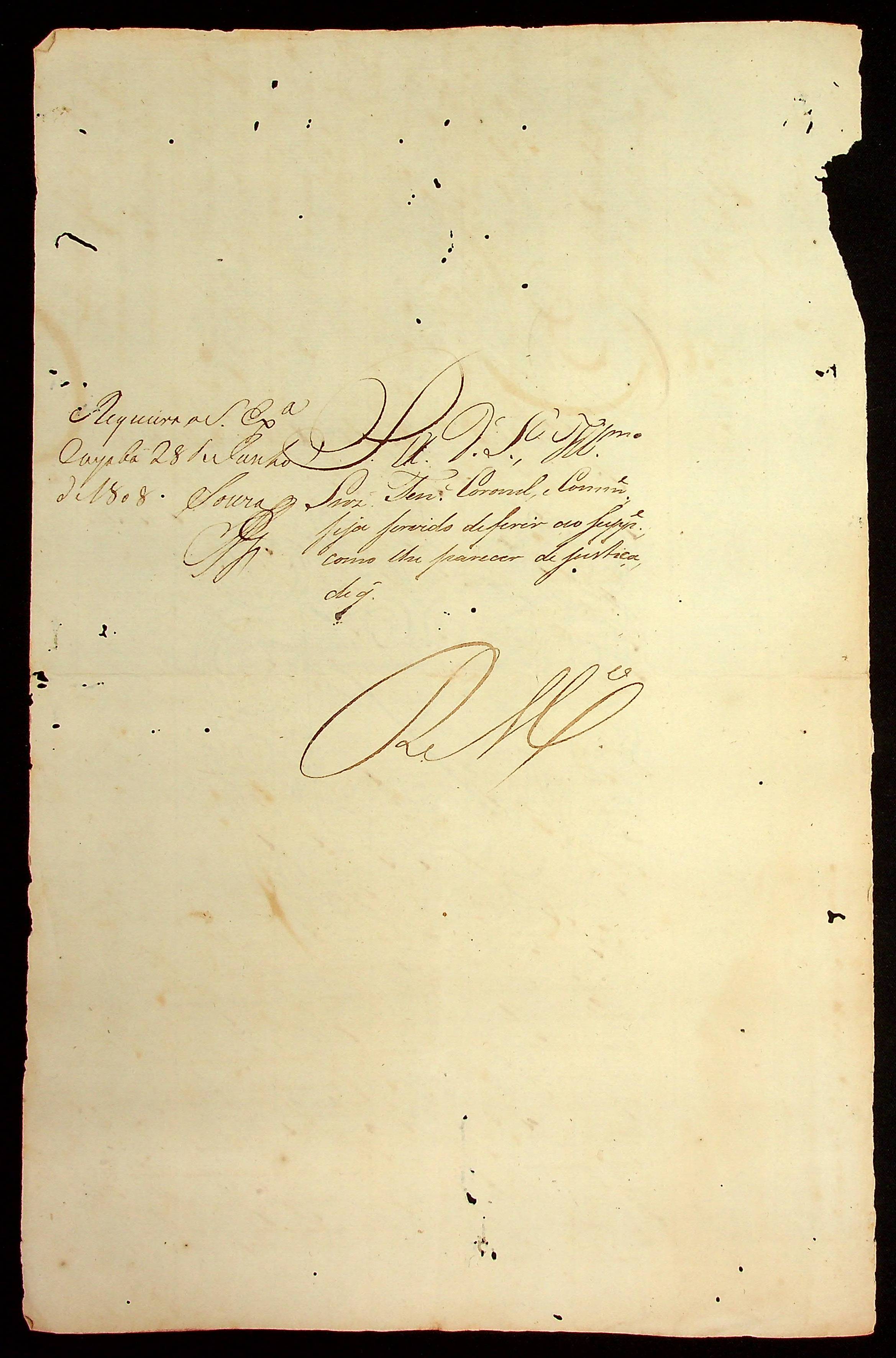 REQUERIMENTO do Sargento de Fuzileiros Joaquim Leite de Araújo ao Tenente-Coronel e Comandante.