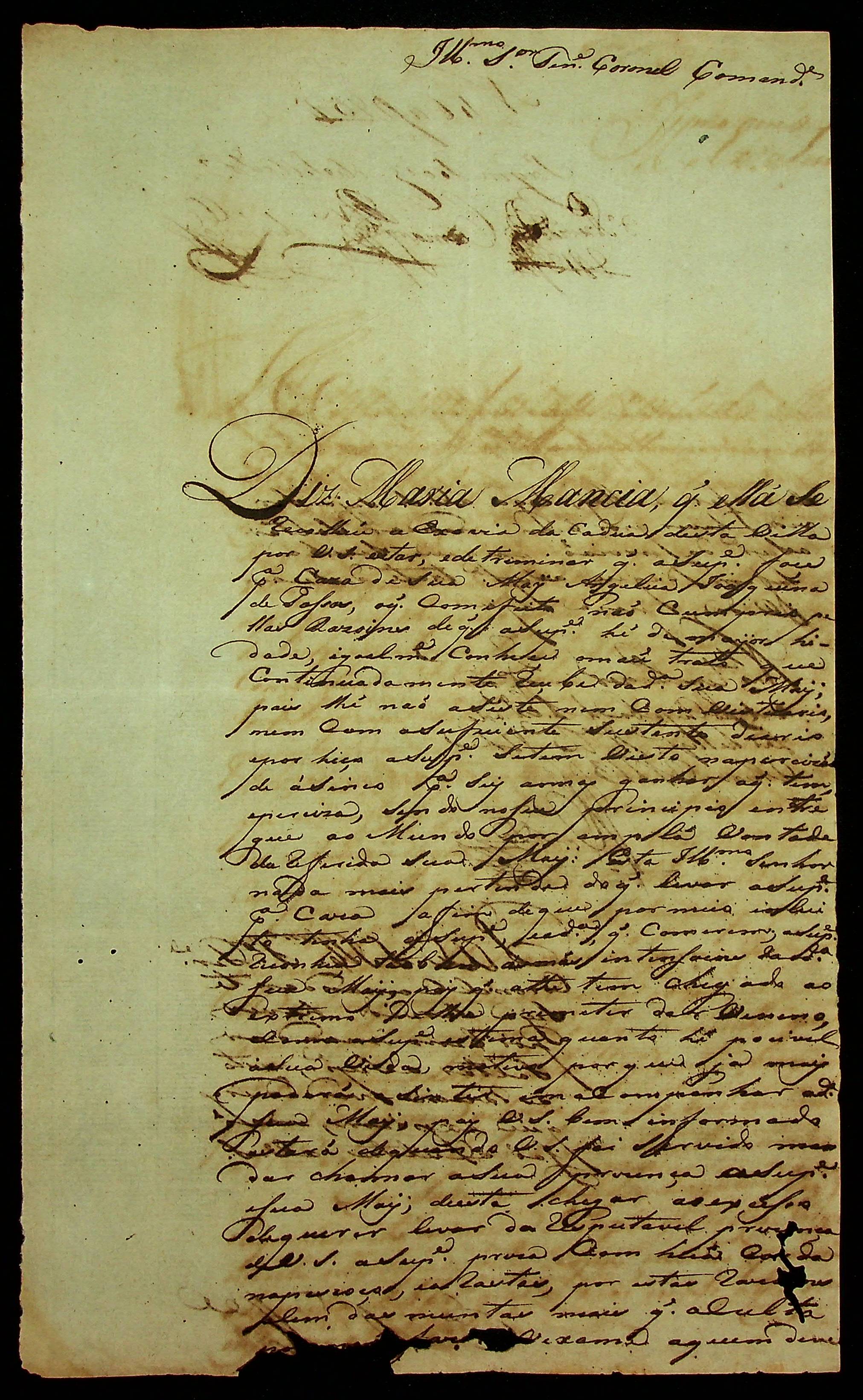 REQUERIMENTO de Maria Mancia ao Tenente-Coronel Comandante Vitoriano Lopes de Macedo.