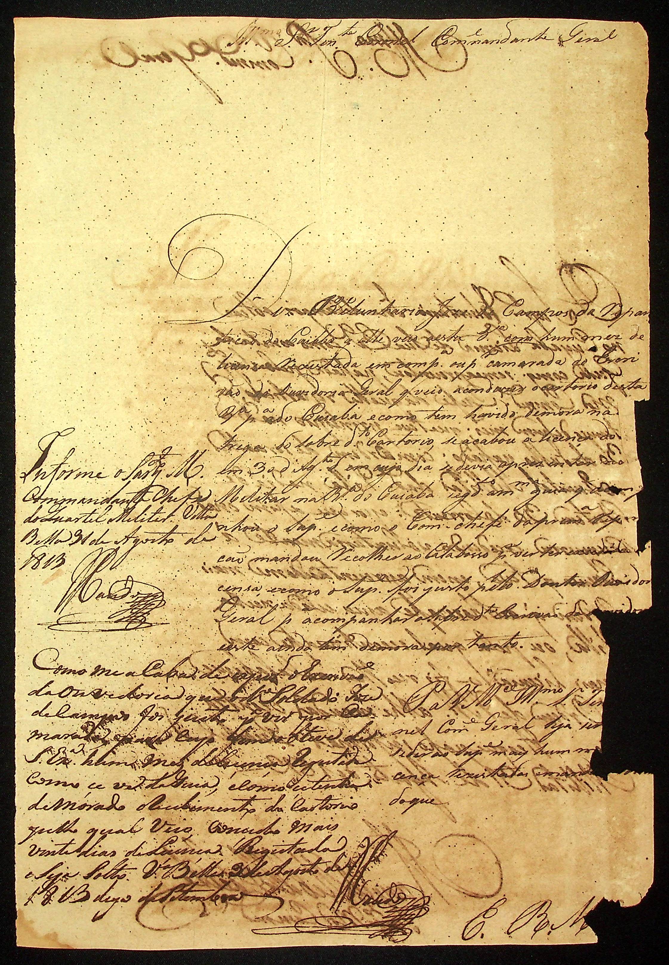 REQUERIMENTO do Voluntário José de Campos ao Tenente-Coronel Comandante Geral [Vitoriano Lopes de Macedo].