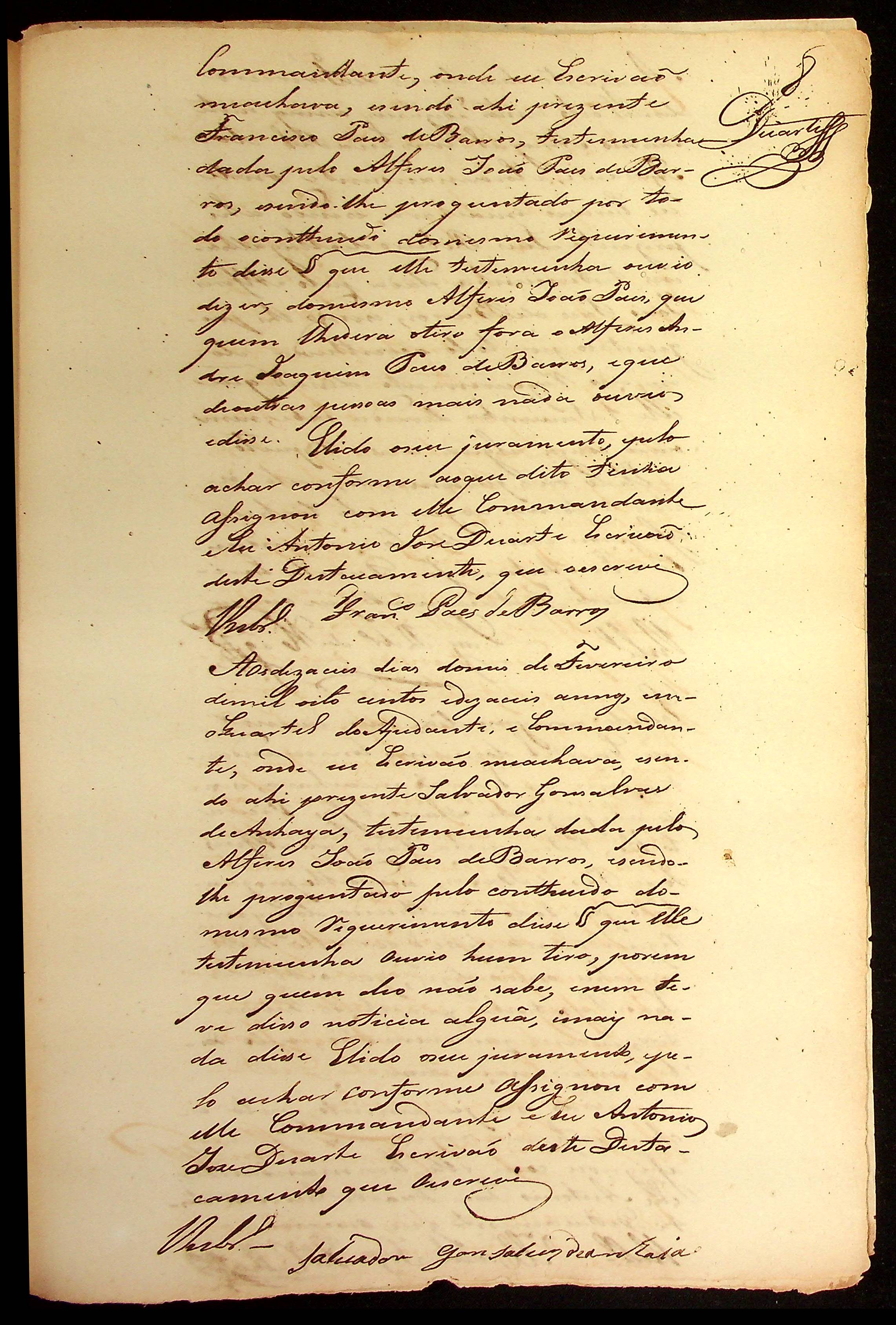 REQUERIMENTO do Alferes de Milícia João Paes de Barros ao Comandante […].