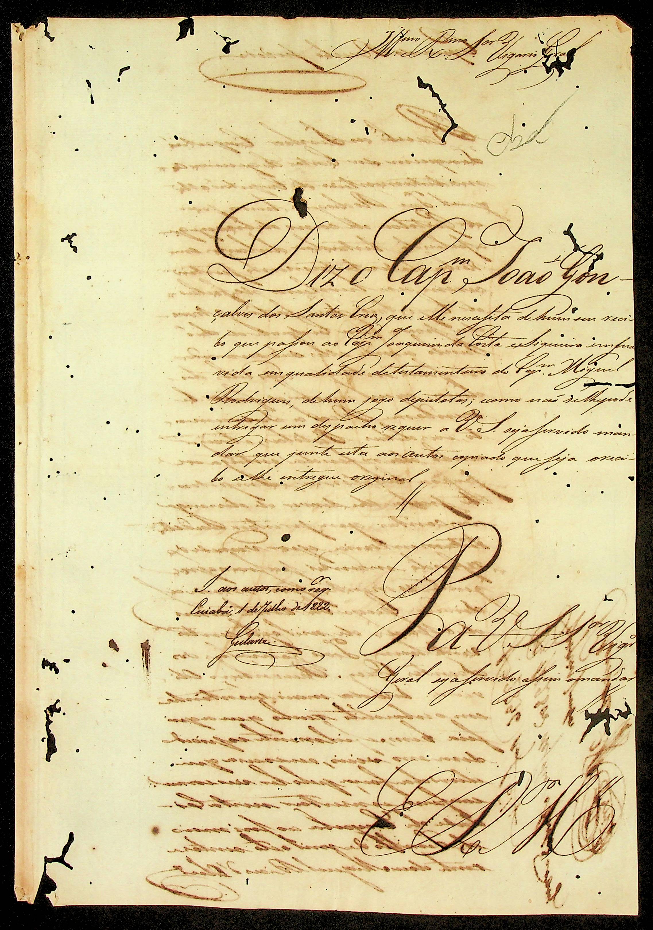 REQUERIMENTO do Capitão João Gonçalves dos Santos Cruz ao Reverendo Vigário Geral.