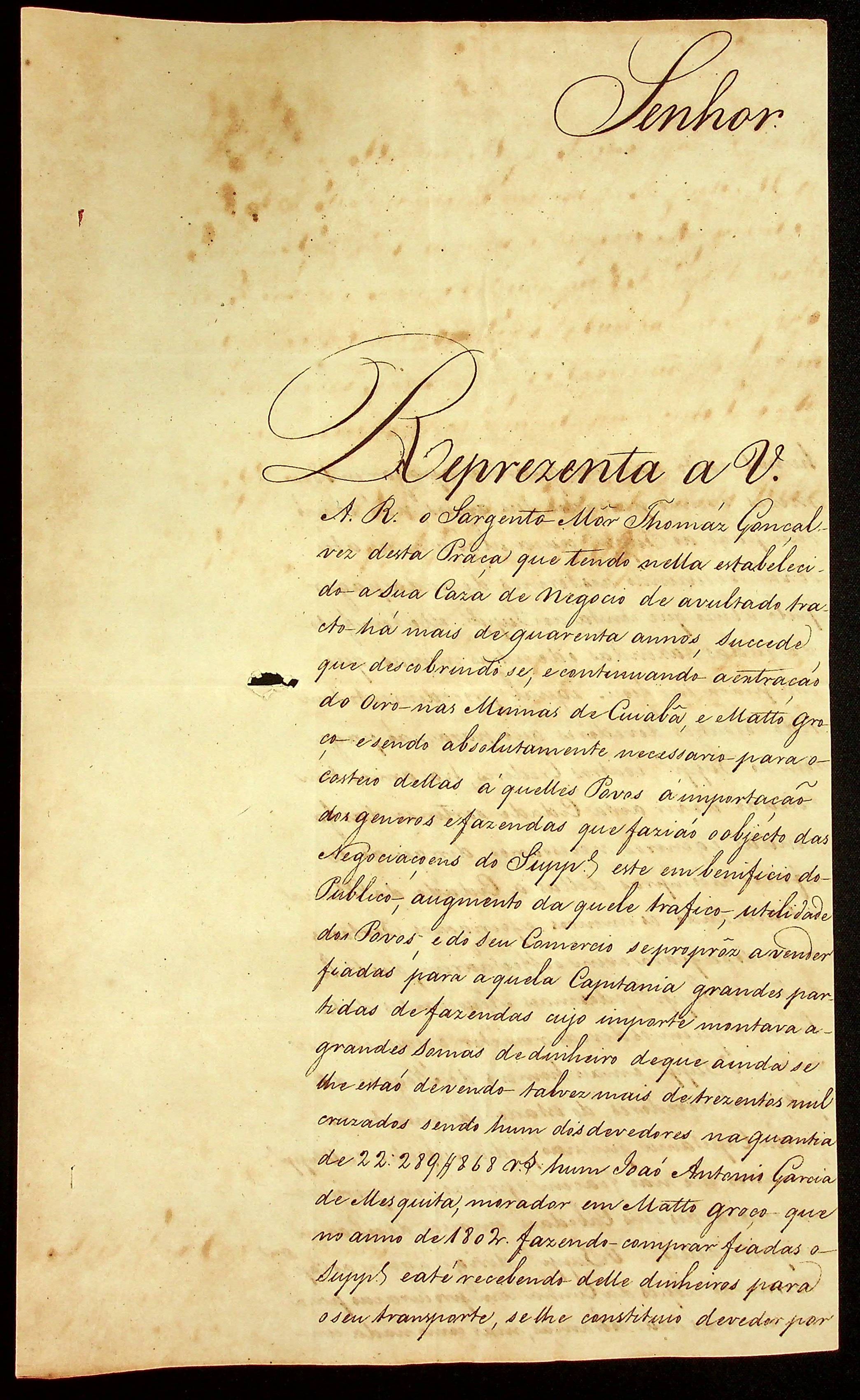 REPESENTAÇÃO do Sargento-mor Thomás Gonçalves.