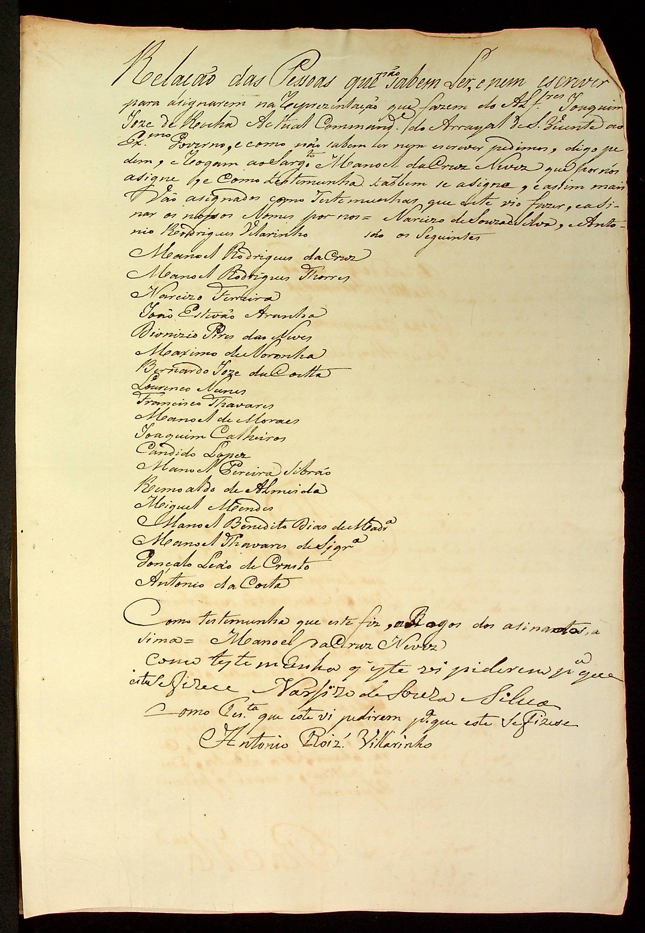 ABAIXO ASSINADO feito pelos habitantes do arraial de São Vicente, cujo os mesmos reclamam do atual Comandante.