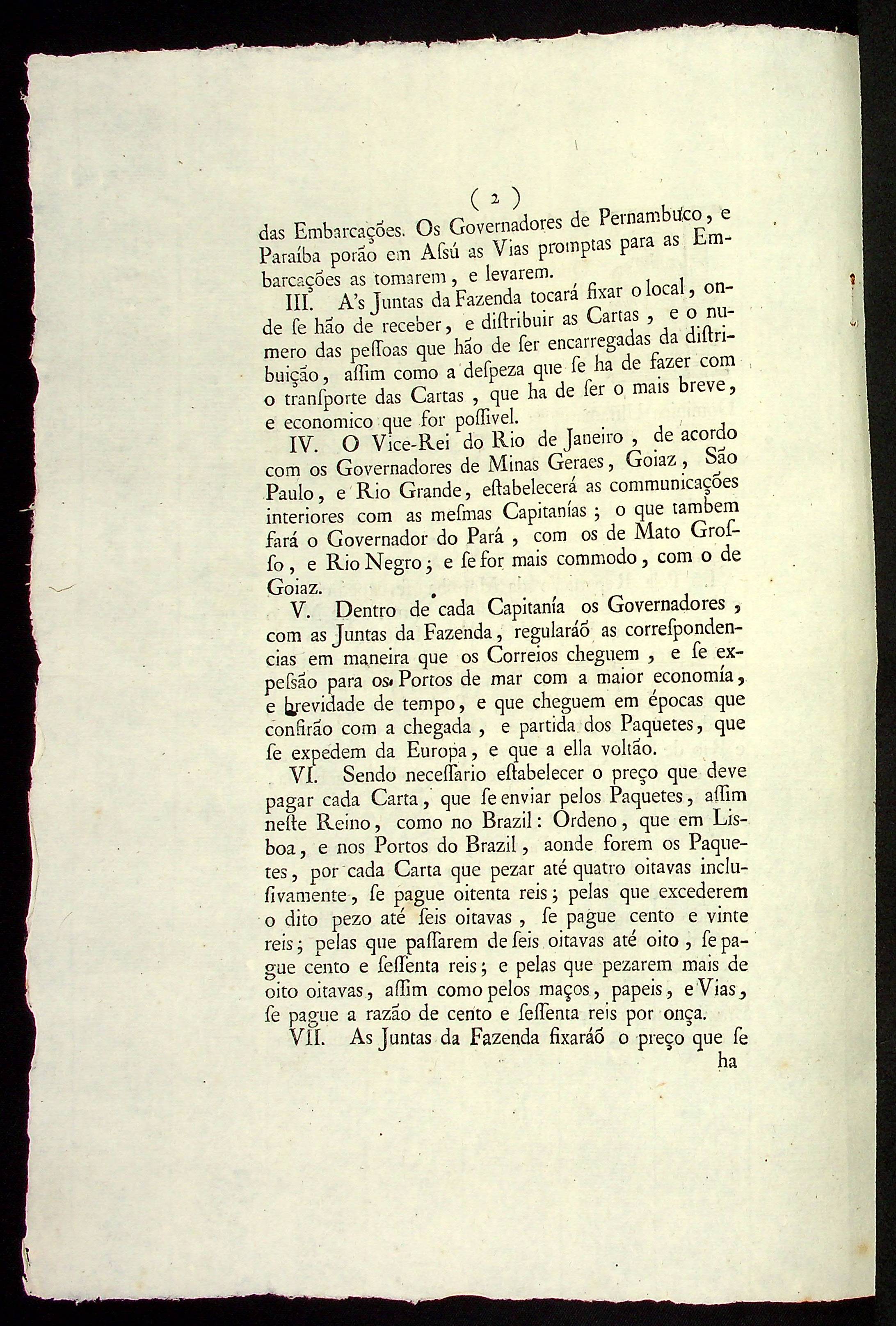 ALVARÁ expedido pela Rainha [Dona Maria] sobre as normas e funcionamento do Correio Marítimo.