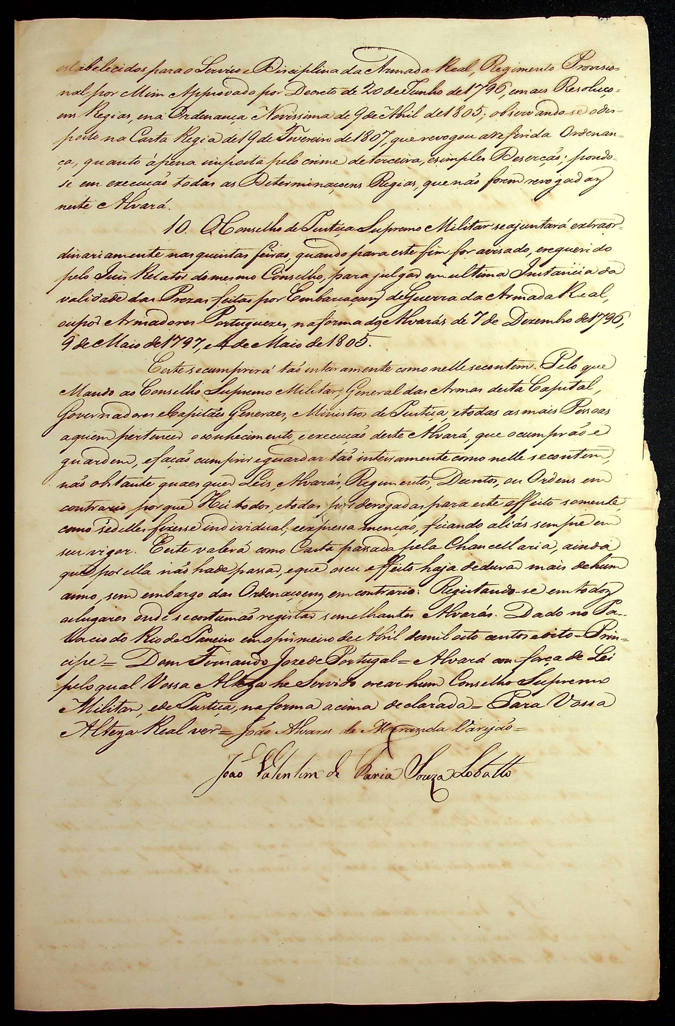 ALVARÁ expedido pelo [Príncipe Regente D. João VI].