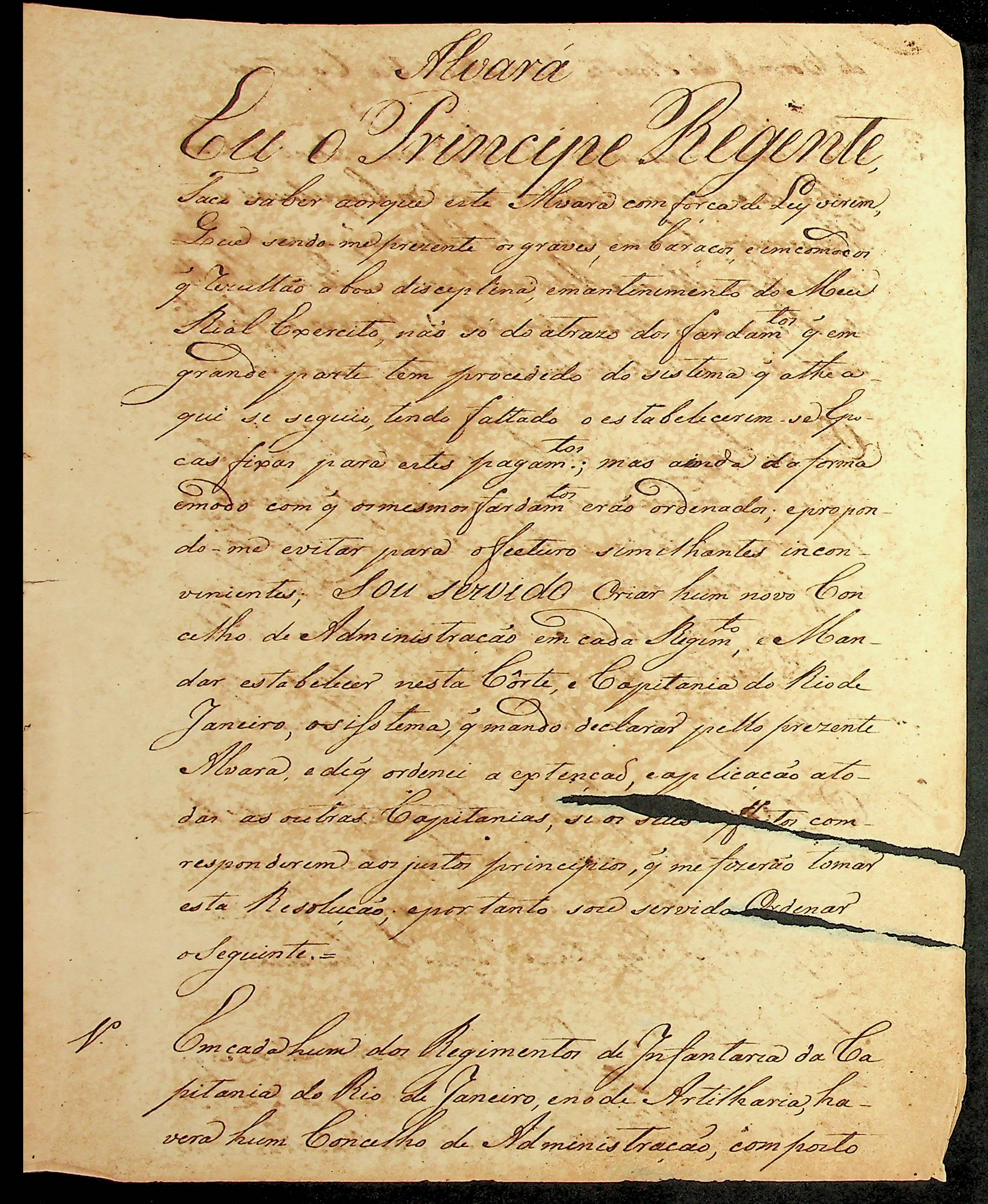 ALVARÁ de lei para Regência dos Concelhos de Administração de fardamento dos corpos de primeira linha.
