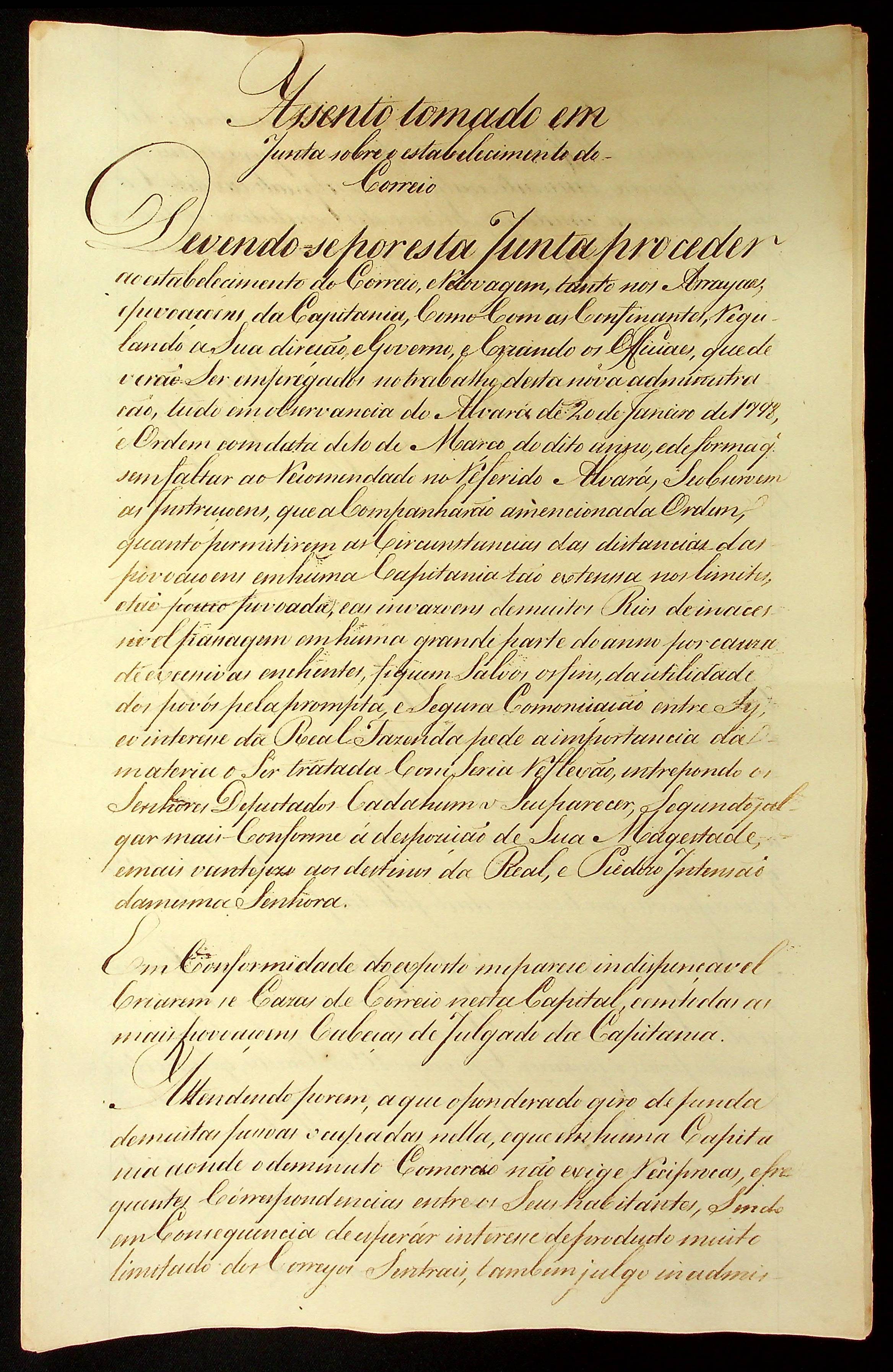 ASSENTO tomado em Junta [da Real Fazenda da Capitania de Goiás] sobre o estabelecimento do Correio.